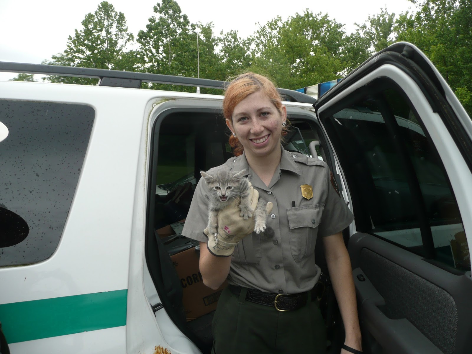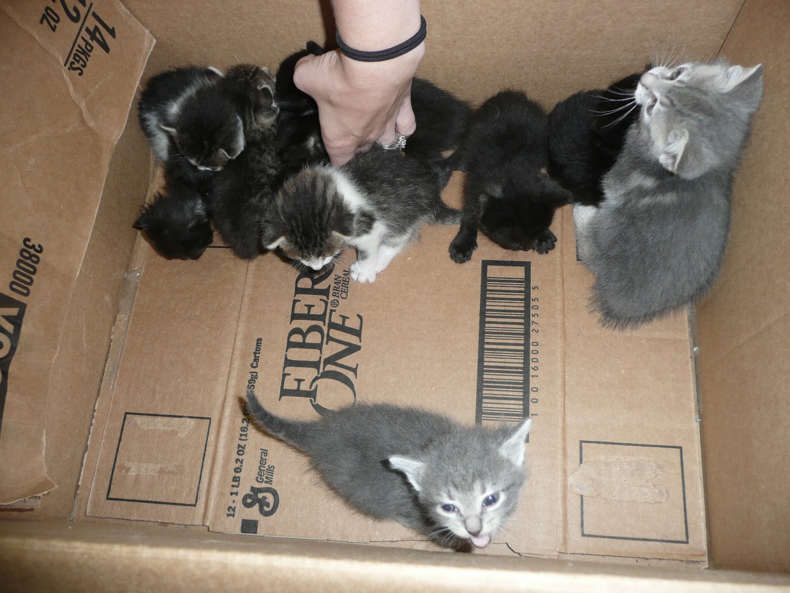 On Sunday I was with Mary Dyer patroling the park in the morning when we happened to notice a box next to the bathroom. We figured it was probably just a box of garbage someone dumped, but when we approached the box and noticed it was taped shut, we realized it was probably something else. When we tapped the box we heard a single ‘meow!’. Opening the box expecting one kitten, we found eleven! There was no mother with them, and they were only days old except for the one that meowed was a little older, enough to climb out of the box in the cruiser while we were driving! We took the kittens back to the station and tried giving them food but they needed to be bottle fed because they were so young. After we tried doing all we could for them we took them to the Humane Society who thankfully took them all. These eleven beautiful kittens just need some care and I am sure they will be adopted as soon as they are ready.