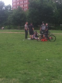 Not too long after that all the rangers reported immediately to the open field directly next to the LBC (Liberty Bell Center). I was the last one to arrive on the scene but I had no idea what was going on so I kept my distance. From a distance I saw the LE Rangers assisting a man who had been lying on the ground. I walked a little closer just to show the rangers I was there, In case there was any way I could help. The rangers had large medical/jump kits with them so I assumed they were on a medical contact. After they escorted the guy into the Cruiser I was able to communicate with the rangers and they told me that the man was intoxicated and may have medical issues. Two rangers took him to the hospital and I walked back to 339. At 339 Supervisor Snow gave me more detail about the incident.