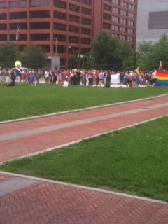 Wednesday I arrived at INDE ready to finish the work week. I got geared up and headed to the main office in 339 to check my emails. While online I added a few details to my blog and logged off the computer. Rangers Snow, Martina and I headed to the Liberty Bell Center to watch the rally out in the field. It was rainy so before we all left the office we put on our rain gear so we could stay as dry as possible. Once we reached Independence mall by 5thand market, we noticed a small crowd getting together to celebrate the Supreme Courts gay marriage ruling. They were in the area from 6-9pm. As the weather cleared up a few more people came out and supported the rally. Halfway through the event most of the LE Rangers left the scene and headed to the east wing of independence hall to have our weekly briefing.