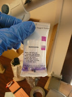 When we got back to the office Swaggard showed me what to do with the drugs and evidence. We weighed the drugs to see exactly how much it was, and then I got a chance to actually test the drug- marijuana with a test kit. The purple means positive, so it is marijuana! Then we tagged everything, put it in the appropriate envelopes, and dropped it into the evidence box. Swaggard went over all the proper procedures about sealing up the evidence so you know it is not tampered with, what to do if you have to go back and get something to do more testing or whatever the case is, and documenting everything. It was an exciting and educational day.