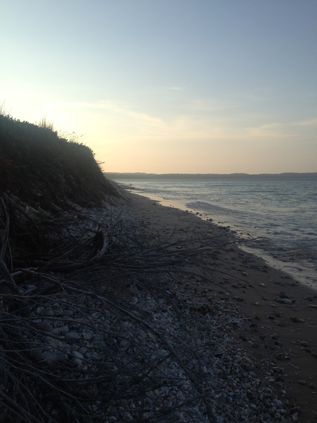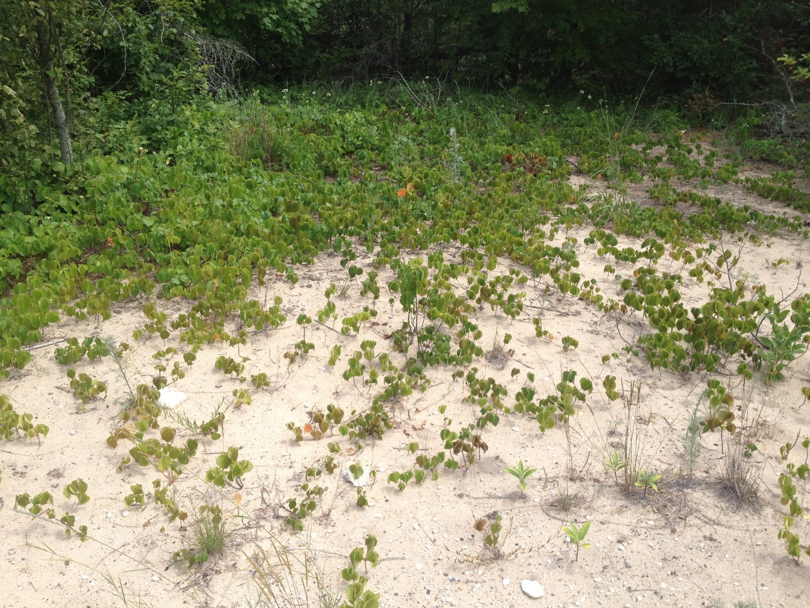 7/13- Again, I met the ferry in the morning, which had a low number of visitors for a Saturday. As she has been doing all weekend, Abbegail has been running the lighthouse tours, which has allowed me to work on other projects. After planning out a route online and with my GPS, I decided to head back out to work on our new trail. I started out at the Weather Station Campground, quickly checking sites before starting my trail work. All was OK in the campground, and I started out hiking through the dense woods near the campground entrance, heading for the Lodge to connect to my previous work a few days ago. At the start, there were some great views of the mainland sand dunes that could be incorporated in the trail. During my hike, I got stuck in some heavy thorns and juniper. I will have to find a new route around this section for the trail. After getting through that, I started looking for an old farm field line that was somewhat visible on Google Earth. I had trouble finding the old field line, and continued to walk through the woods heading towards the Lodge. Eventually, I got to the Lodge but the hike did not go as I had planned. I will have to look at the old maps again and try to find another route. This project will be an ongoing one for the next week or so.
