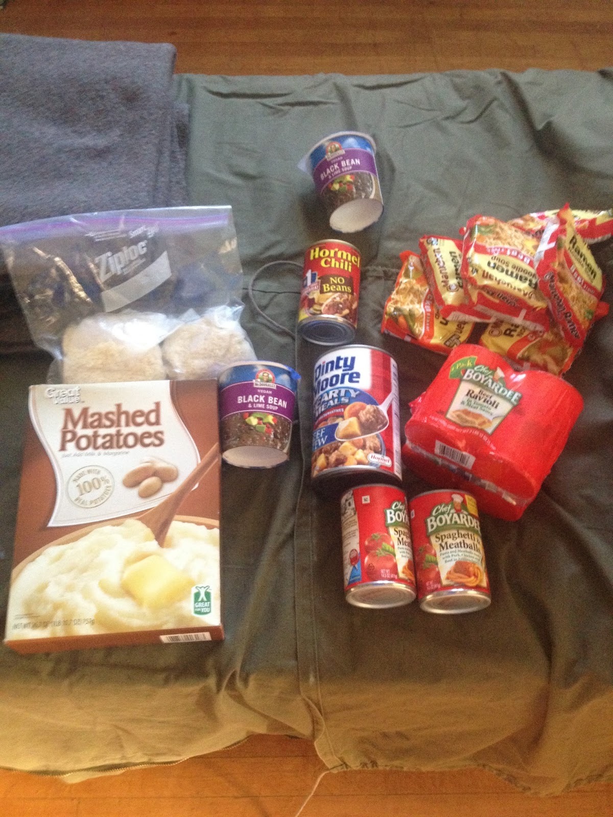 An example of some of the food that visitors leave in our Stranded Camper box. We use this food for people who get suck on the island for a day or two and need some help.