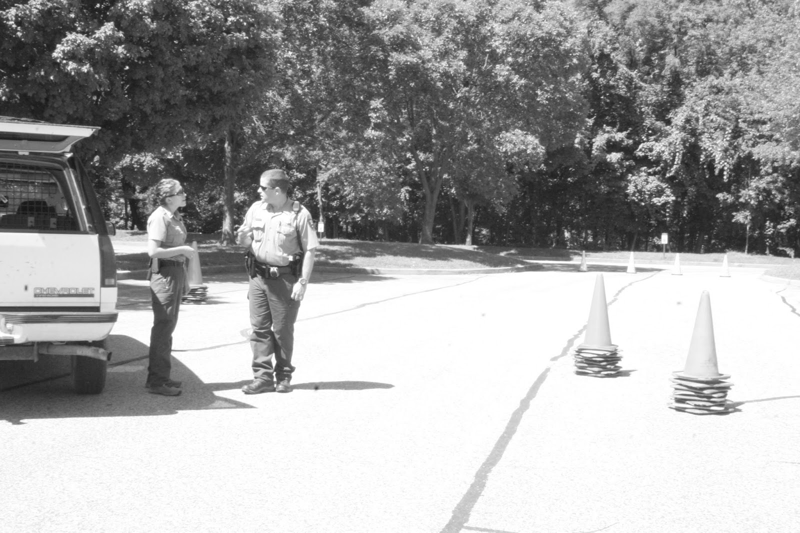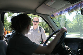 We met up with ProRanger Jennifer Pflugfelder and Ranger Mark Howard in the parking lot of the Visitor’s Center where they were setting up a driving course. We learned that Jen, along with some of the other ProRangers, were on a list for deployment to a wildfire! They would know in the next few days whether or not they would be going. [SPOILER: Jen Pflugfelder did spent several weeks in Northern California at the Klamath National Forest.]