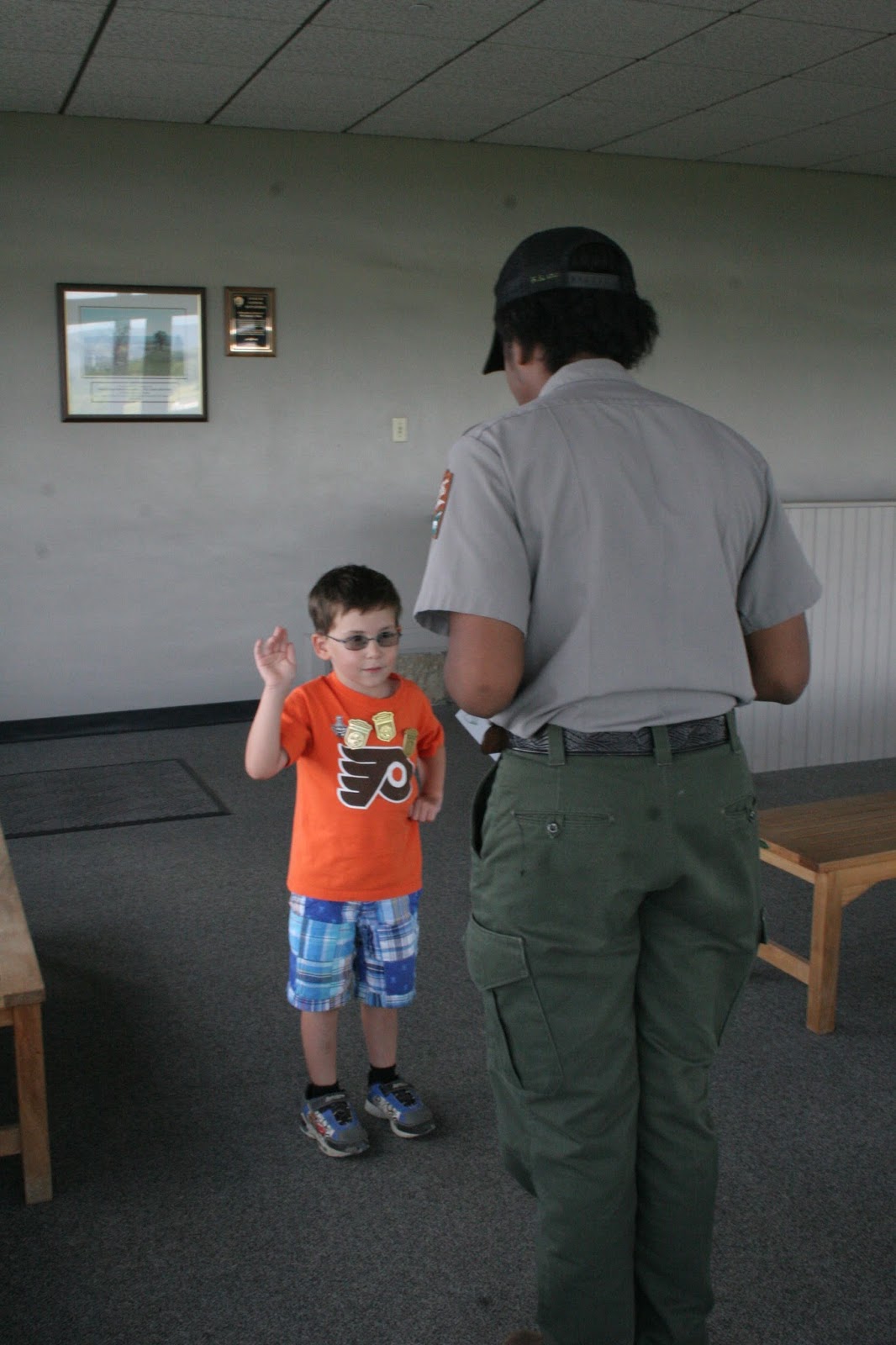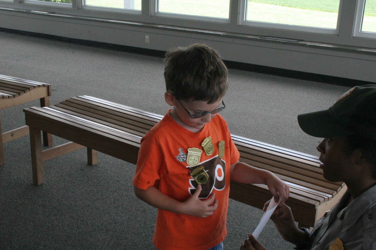 After meeting with Ranger Jones, we were exhausted and ready to hit the road for the 180 mile trip home!  We passed two National Parks on our way home (Hopewell Furnace National Historic Site and Valley Forge National Historical Park) and I am proud to say that Finn can spot a brown sign and the NPS arrowhead from a mile away!  He is on a mission to keep earning junior ranger badges – he received a fifth badge during a trip to Mt. Ranier in August and now proudly displays them on an official junior ranger vest.  Finn is an official NPS groupie!