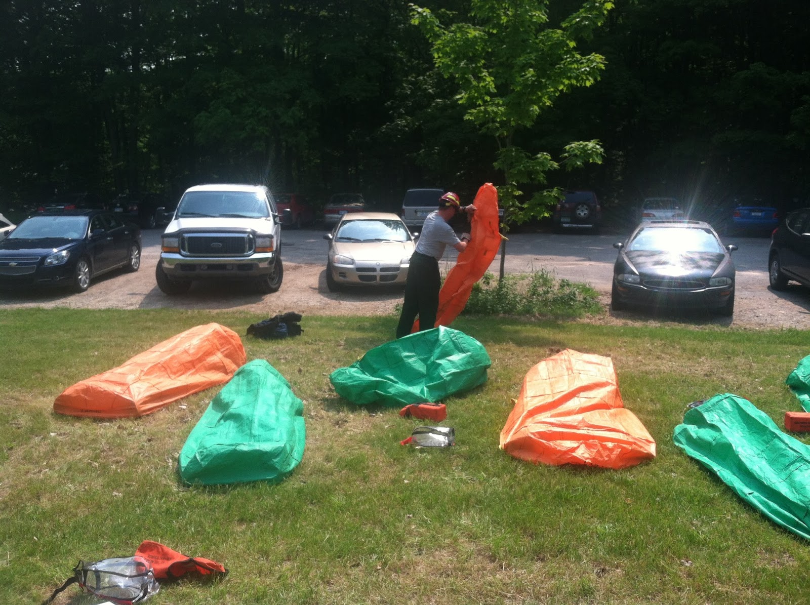 My second week, I sat in on the Wildland Fire Refresher for employees with their Incident Qualifications Card. Below are pictures of the class practicing deploying fire shelters, which rangers should only use as a last resort when a route of exit from a fire is not available.