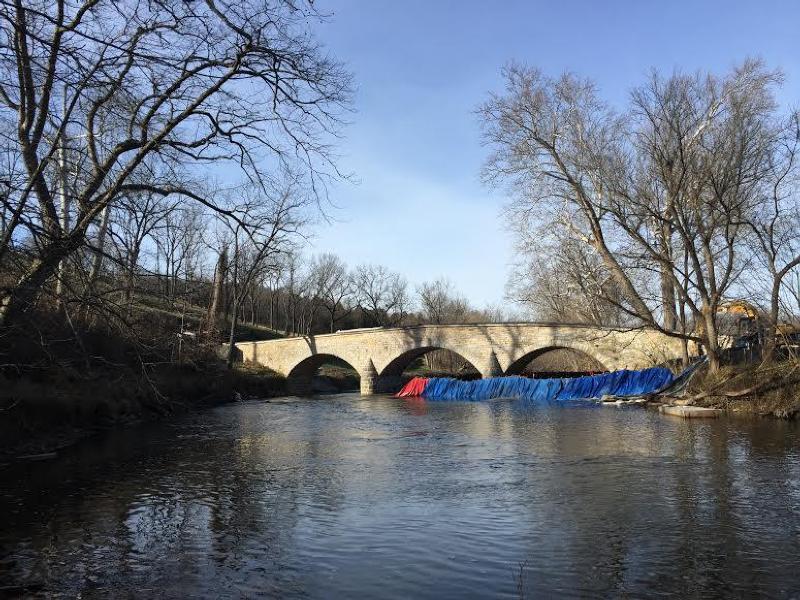 After the structural fire workshop, I met with the engineer working on the rehabilitation of Burnside Bridge. He took me on site and explained the engineering analysis that showed the serious damage within the bridge. In a nutshell, the bridge did not have proper drainage in place and was crumbling due to freeze-thaw damage within its footings, piers, and cement mortar. The two phased project proposed was to dam Antietam Creek in order to correct the space and stagnate water within the footings and to platform those footings down onto bedrock. Phase two of the project, and the phase currently being carried out is correcting the bowed wall to be in line with the arches of the bridge. Further drainage was engineered to increase longevity of the design, such as inverting the road crown for natural drainage toward the bank, stainless steel drains to spill runoff back into the creek, and sloped cement wall-tops to eliminate puddling. The project is so time intensive and challenging because the workers must organize the stones correctly in order to maintain historical integrity. It was absolutely out of this world to see a million dollar preservation project in the flesh. The team carrying out the work is resuscitating a 180 year old bridge to endure another 150 years of wear…Amazing!