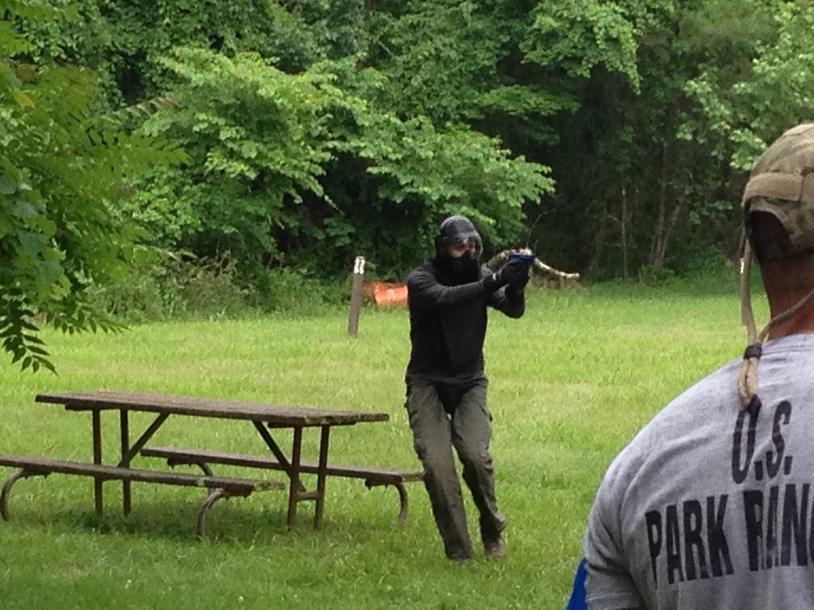 The third day of training we went down to SHEN’s range and practiced some basic tactics with the red guns. This was a great chance for me to do some role playing as the suspect and see how officers would respond to certain situations. We ran through vehicle ambush drills and how to react when you are in your vehicle under fire. Later in the day we ran through drills with paintballs and how to utilize your cover. The last day of training we were back in the classroom for the morning to go over how an officer should respond to a victim and how we can handle those situations appropriately. We also got to practice using Stop Sticks in case there is ever a time when a vehicle is being pursued and spikes need to be deployed in a safe manner. Afterward, an officer with the Virginia Game Commission and Inland Fisheries came to teach us simple Law Enforcement phrases, but in Spanish! After that he discussed poaching and wildlife issues that we might experience here in the park and also how important it is for the National Park Service and Game Commission to work together and form a great relationship. Once the afternoon rolled around we headed back down to the range to practice Taser drills. I was used again for roll playing and dressed up in a padded suit to have inert tasers shot at me. It was a pretty fun time and a great opportunity again to really see how an officer reacts to a stressful situation and when pulling out their taser might be appropriate. All in all it was an excellent week for me to really learn and experience some of things I have to look forward to when I go off to the seasonal academy next August!