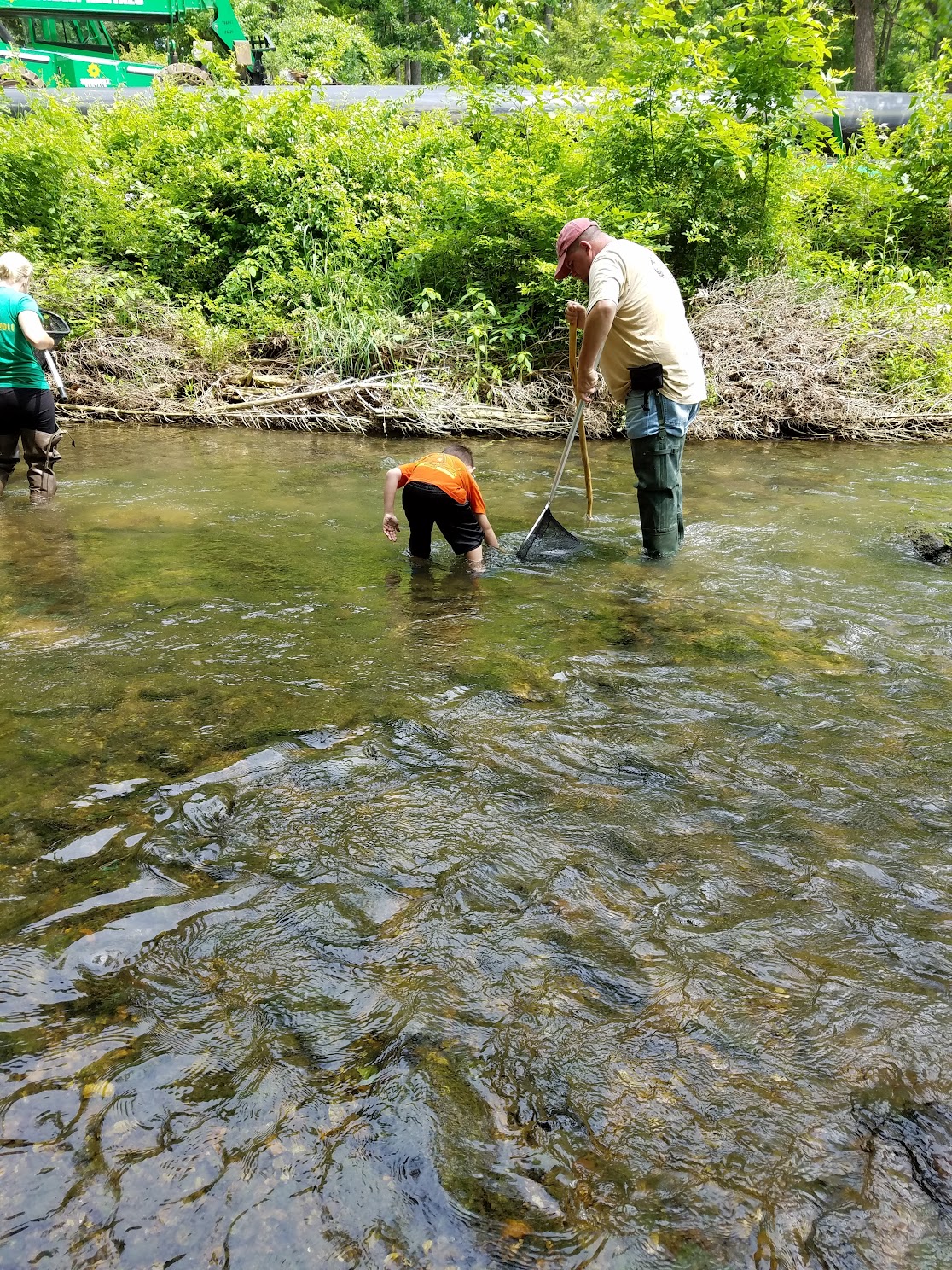 The Crayfish Corps goes out every Saturday with nets and waders for approximately 2 hours to catch crayfish. You position your net directly downstream of a rock you think crayfish are under and when you turn the rock over the current carries the crayfish straight into your net. Recently, Ranger Pat devised a new method of crayfishing where you stretch a drag net across the stream and turn over rocks for about 5-10 feet ahead of the net. The current carries everything down into the net and then we sort through everything in the net to find crayfish. This is a more effective method of crayfishing and can net several dozen per try. On average, about 15 people can find 100 crayfish an hour in Valley Creek.