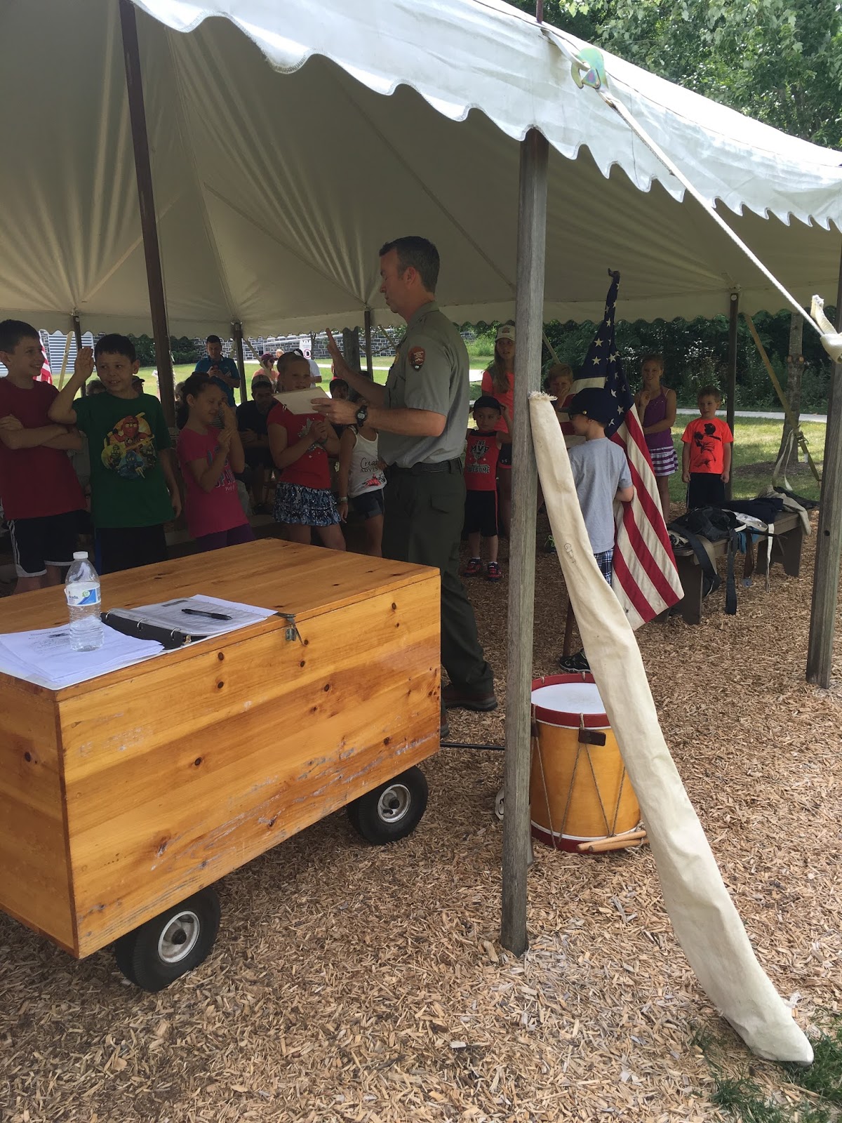 Later in the day, I was able to help the interns and our seasonal staff with the Join the Army program. The Join the Army program is where we get kids “enlisted” in the union/confederate army, and they get to dress up and learn how the soldiers would fight back in the battle at Gettysburg. I enjoyed helping sign the kids up and participating in the program given outside as all of the kids were having a blast, and I was learning stuff myself in the kid’s program! My final activity of the day was sitting in on a program given by one of our permanent staff Ranger Phillip Brown. The program that he gave was Care of the Wounded, and it was a great program not only being very informational, but I was able to learn a great deal of how he structures his programs. Through the rest of the week, I was able to see more programs given by other rangers, and see just how each individual structures theirs and the differences between them all. By seeing this I feel like I would be able to take bits and pieces of each one and come up with a good structure for a program of my own if I was given the chance. I also must add that at the end of the week, I was so impressed and happy to see how great the other inters were doing, and I know they will have bright futures ahead of them!