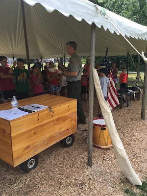 Hello All. Hope everyone is still having a great summer, as this week (week 8 of 10) was filled with learning and cramming more history lessons in my head! This week I was with our interpretation division, learning just how programs are given, and was also able to see just how much the other interpretation interns have learned and how they are doing. I can truly say that after spending the entire week with them, we have one of the best, most creative staff around. The hard work and the dedication that these guys and gals put in is amazing and it shows. On my first day there, I was assigned to the visitor information desk inside our visitor center. While there, I learned a lot more about exactly how the building itself is run, as well as all of the emergency procedures and what we are required to do if on arises. I also learned a lot of information regarding the town itself, where all of the different tour types are located, and other small bits of information that a visitor would come up and ask about.