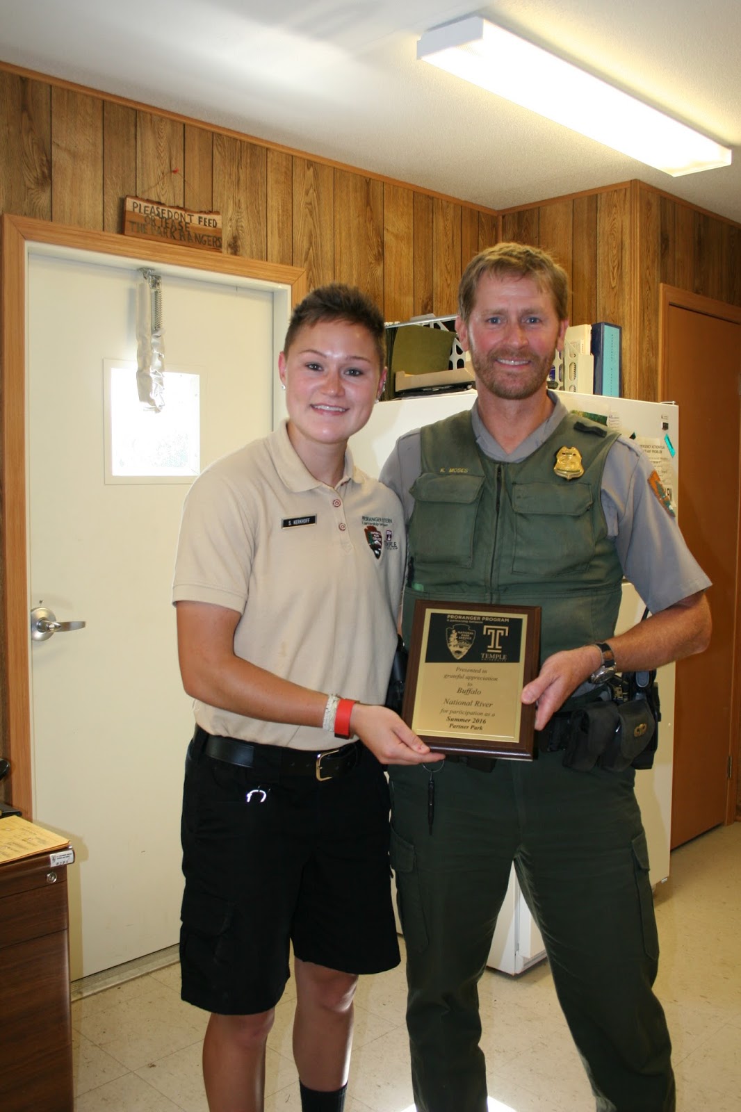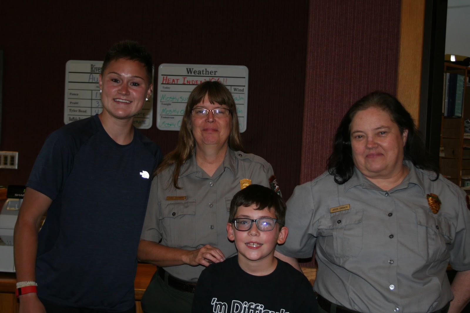 They invited ProRanger Shauni Kerkhoff and her summer roommate Ranger Patrick Jarrett to join us for a homecooked meal. The weather was crazy hot. After tent camping for the night, I headed to the Ranger Station for some meetings and a plaque presentation to District Ranger Kevin Moses. The junior ranger stayed with his grandparents and finished up his junior ranger books.