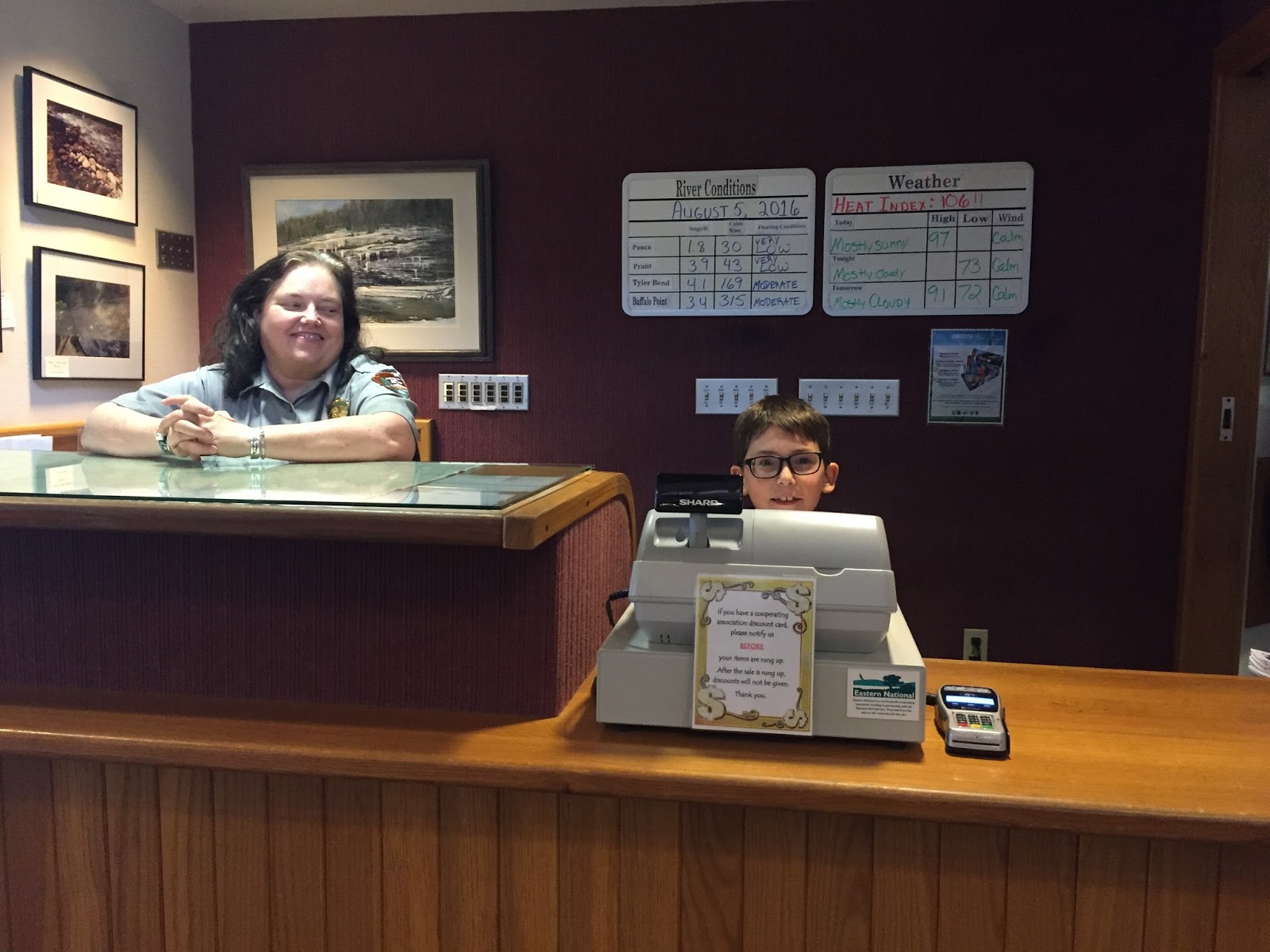 Our last day at Buffalo National River started with some cinnamon rolls as big as our heads! Then we spent some time back at the Visitor Center where Finn helped out!