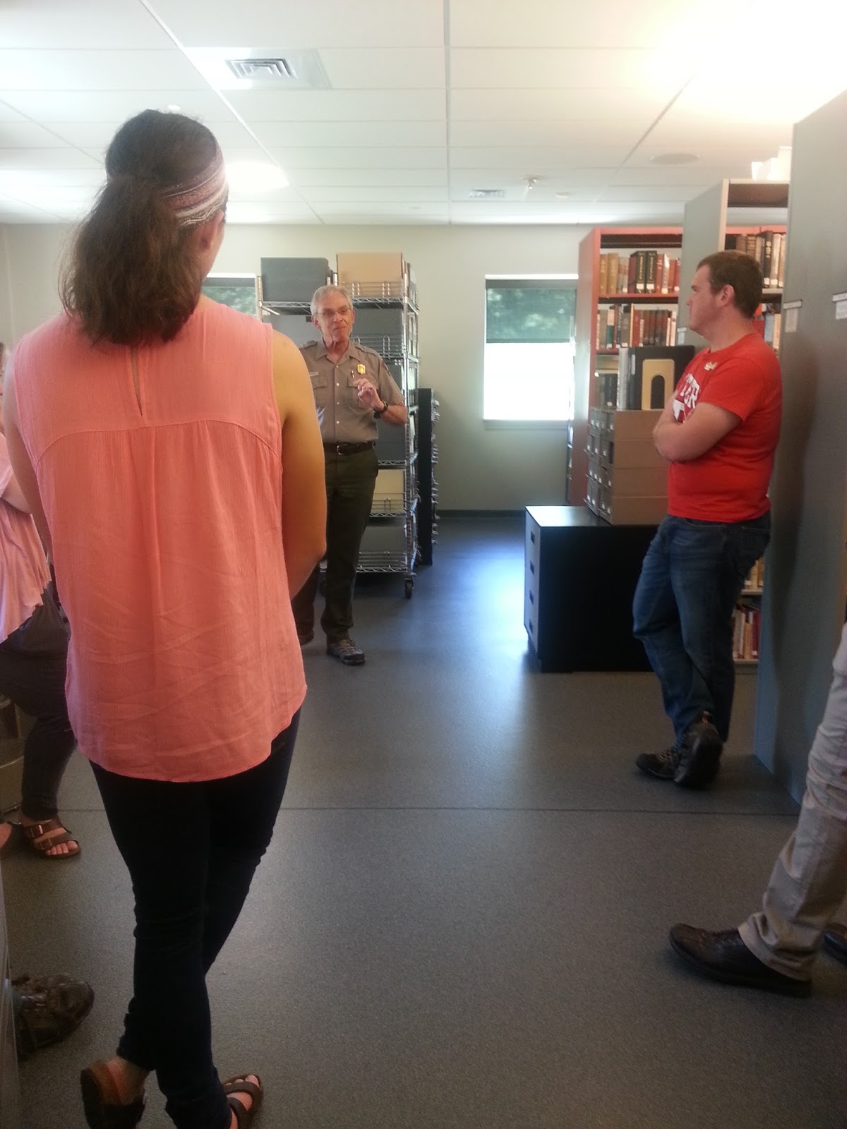 Throughout the week, I also learned more and more about how interpretative programs are run at Gettysburg NMP and in the National Park Service as a whole. My ProRanger program classes at Temple had already introduced the idea of interpretation to me by way of Freeman Tilden. Here at Gettysburg I was able to apply some of that knowledge when I learned about the National Park Service’s system for creating programs through universal concepts, themes, and research. I went on several tours with experienced interpretative rangers and learned some of the many intricacies and tricks they use for their programs. I also learned more about what it takes to put those programs together while visiting the park’s archives.