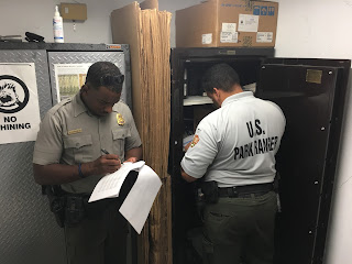 Ranger Laurencin gave me a lesson on firearms safety. He went over the importance of cleaning and properly caring for your gun especially in an environment such as the Caribbean when salt and humidity really have a negative impact on your firearms if not properly cared for.  I learned how to clean a handgun and saw how to take apart the handgun which enabled me to see the mechanics which helped me better understand the handgun and how it operates. Finally, Ranger Laurencin, Ranger Rivera, and I worked on a park Inventory sheet. A large part of this was working to make sure all park property was accounted for.