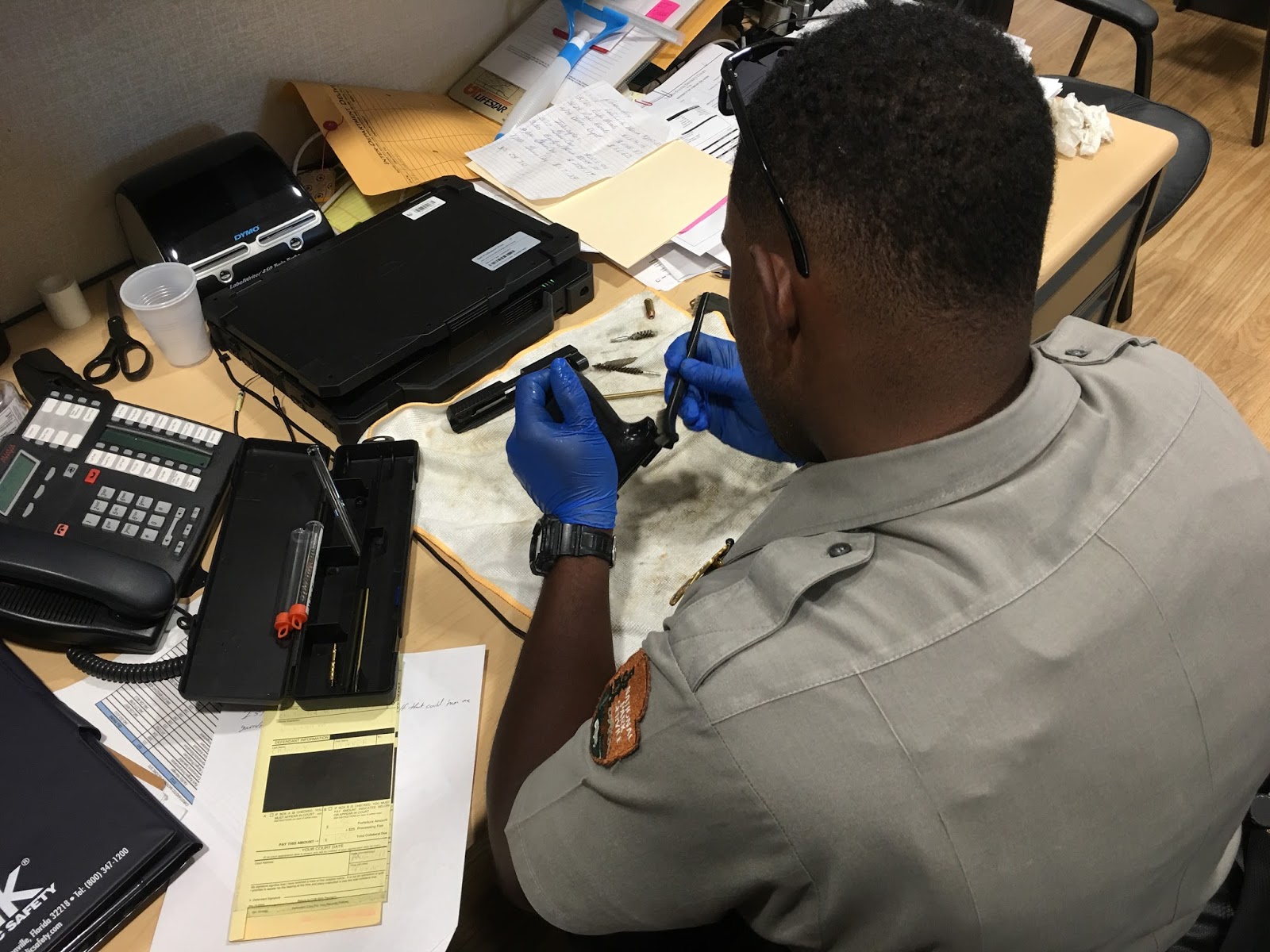 Ranger Laurencin gave me a lesson on firearms safety. He went over the importance of cleaning and properly caring for your gun especially in an environment such as the Caribbean when salt and humidity really have a negative impact on your firearms if not properly cared for.  I learned how to clean a handgun and saw how to take apart the handgun which enabled me to see the mechanics which helped me better understand the handgun and how it operates. Finally, Ranger Laurencin, Ranger Rivera, and I worked on a park Inventory sheet. A large part of this was working to make sure all park property was accounted for.
