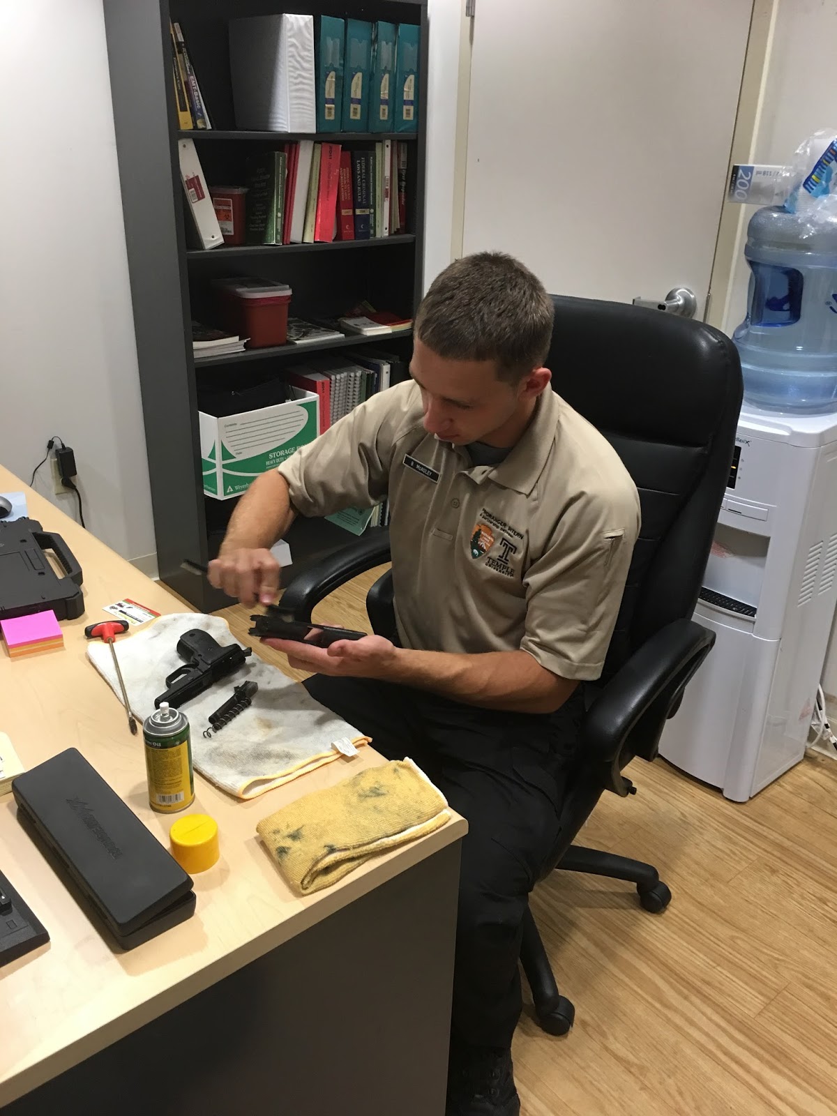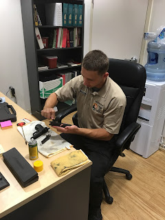 This week was my turn to clean Ranger Laurencin’s Firearm. Again, Firearm safety was instructed along with many other best practices. I was able to safely clean the firearm which allowed for me to see how the gun was assembled and how the many pieces worked together. This only increased my understanding of firearms and provided me with a critical learning experience.