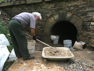 Speaking of culverts, here is one now. The tow path is up above, out of the frame, and the canal bed on the other side. This is Dale, the last remaining mason employed by the canal. One day this week I helped him repair one of the wing walls of this culvert. Its surface was getting degraded, losing stones, so Dale was filling up the holes, replacing the stones, and adding new mortar. This is called repointing. If we are being honest, I didn’t really do much, as Dale is the master mason. I really just helped him carry his materials down into the stream bed and helped spread and smooth the mortar. He already had the project underway before the day I spent with him. It was pretty cool to see how some of the historical preservation is done on the stonework at the canal. Dale talked my ear off all day long, telling me about some of the other restoration projects, what has changed in the park in the 30 plus years he has been here, and just about anything else you can imagine, a few things I probably shouldn’t repeat here.
