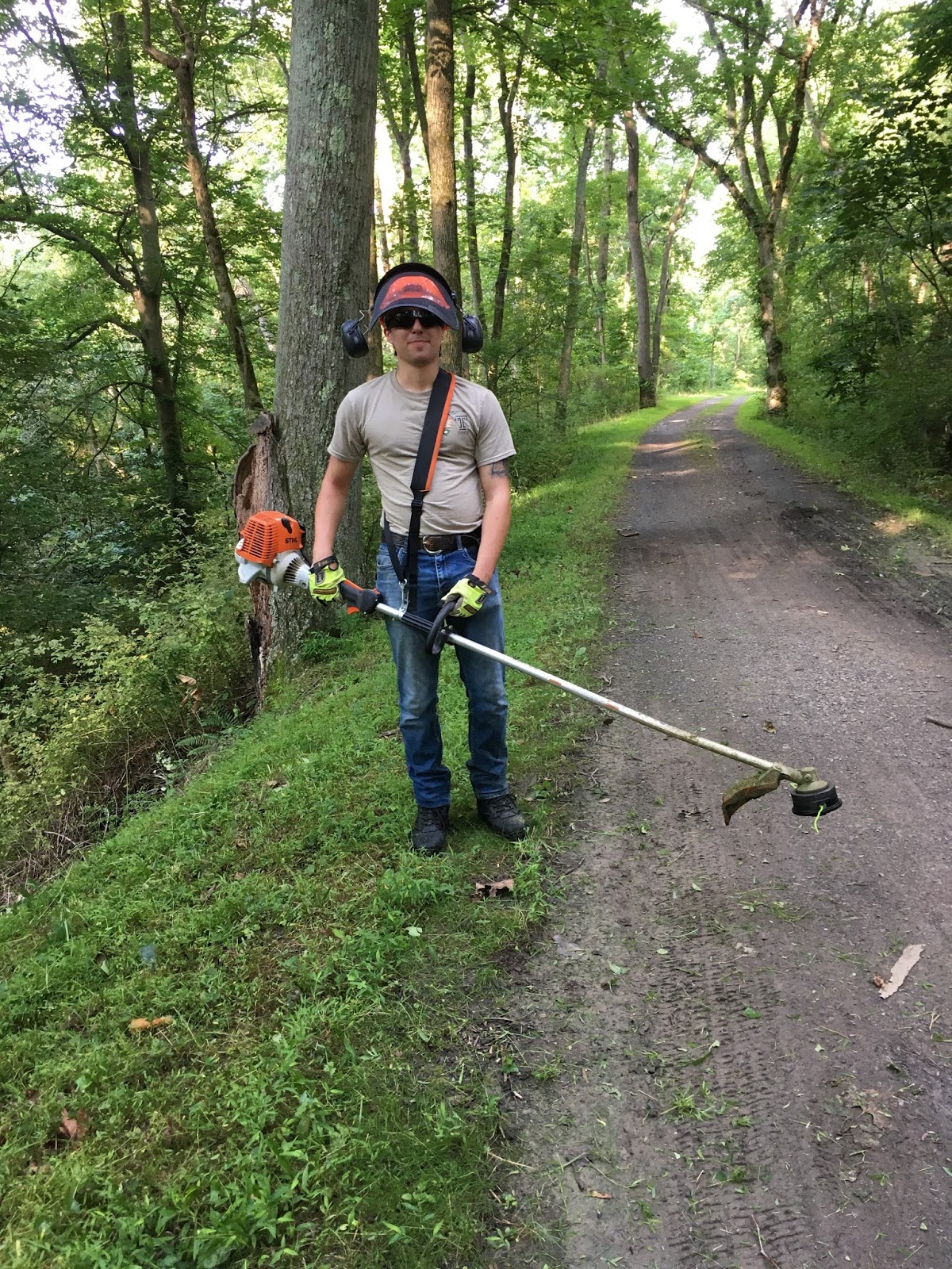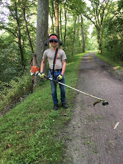 After all that, it was back to business as usual with the maintenance division. I worked another day with one of the CCC crews (the very same created by FDR in the New Deal). Except this time the crew was actually here, rather than just me working with the crew leader like I did last time. Myself and two other young men weed whacked (weed eated) a bunch of the culverts along the canal. A culvert is a stone tunnel structure built to allow a stream crossing the path of the canal to flow underneath the towpath and the entire canal itself. When trees grow on the sides of the canal their roots penetrate and weaken the berm walls, including any stone structures like culverts. If they uproot in a storm they can cause a great deal of damage. With a shrinking budget and maintenance department, the culverts of the canal had not been maintained for some time. Last summer the CCC crews removed the trees from all the culverts. This summer they are being weed whacked, and hopefully they will continue to be maintained. The areas that require maintenance are from the towpath down to the top edge of the stone tunnels, usually very steep slopes with as much as a 15 or 20 foot drop to the stream bed below. Its slippery work.