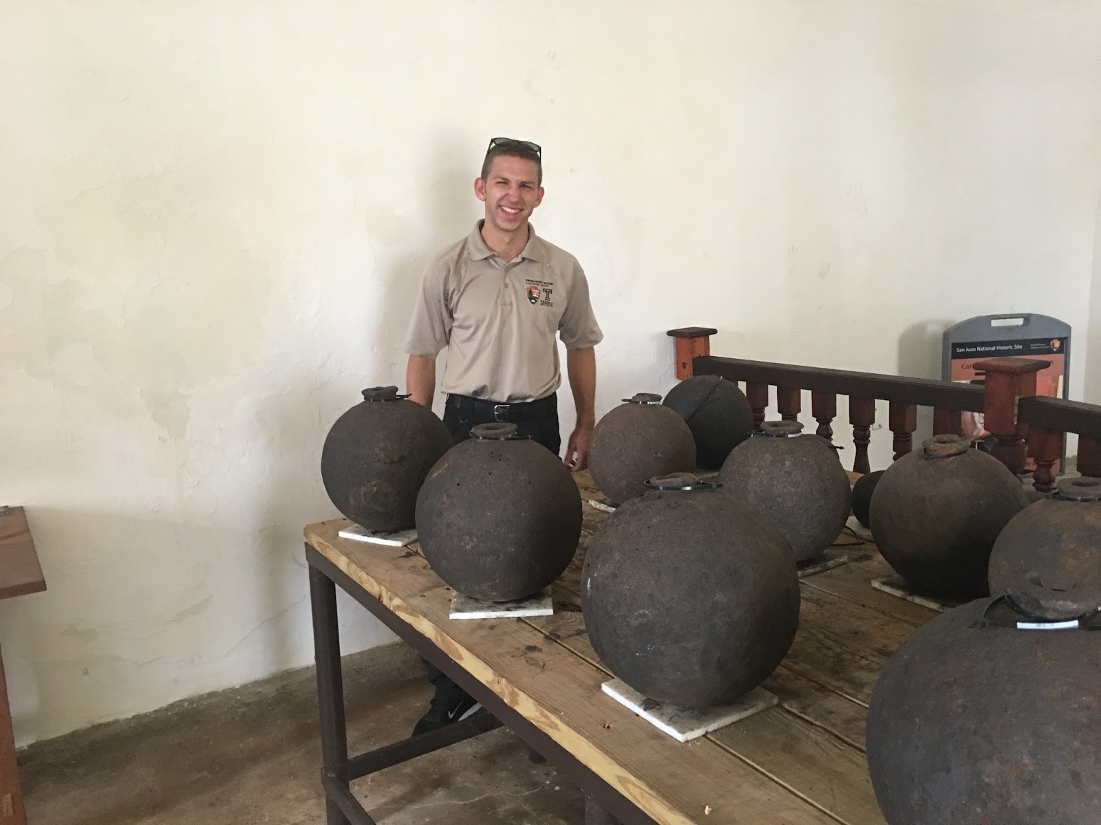 I worked with Ranger Palle from the Resource Management Division. Ranger Palle preserves historic artifacts relevant to the San Juan National Historic site. We organized his work space to make it more inviting for visitors to observe his important work. We moved over 800 pounds of historic artifacts and rearranged his work tables. This work aided in both preservation and interpretation of the artifacts.