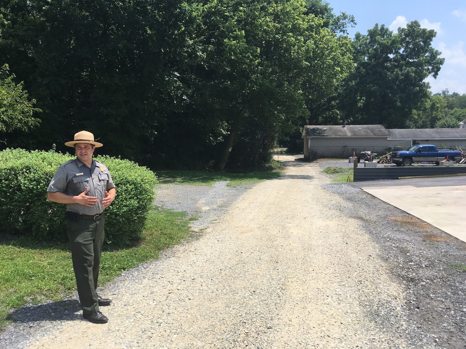 Later in the day, I went to the town of Williamsport with Ben, where we met District Interpretive Ranger, Matt Graves and Town Clerk, Donnie Stotelmyer.  We knocked on doors and handed out information regarding the towpath bypass that is going into effect while construction is being done on the Conococheague aqueduct.  The bypass reroutes the towpath down one residential block and around the backs of some houses, and we wanted to make sure the residents of Williamsport were not caught off guard by all of the hikers and bikers suddenly making their way around their homes.