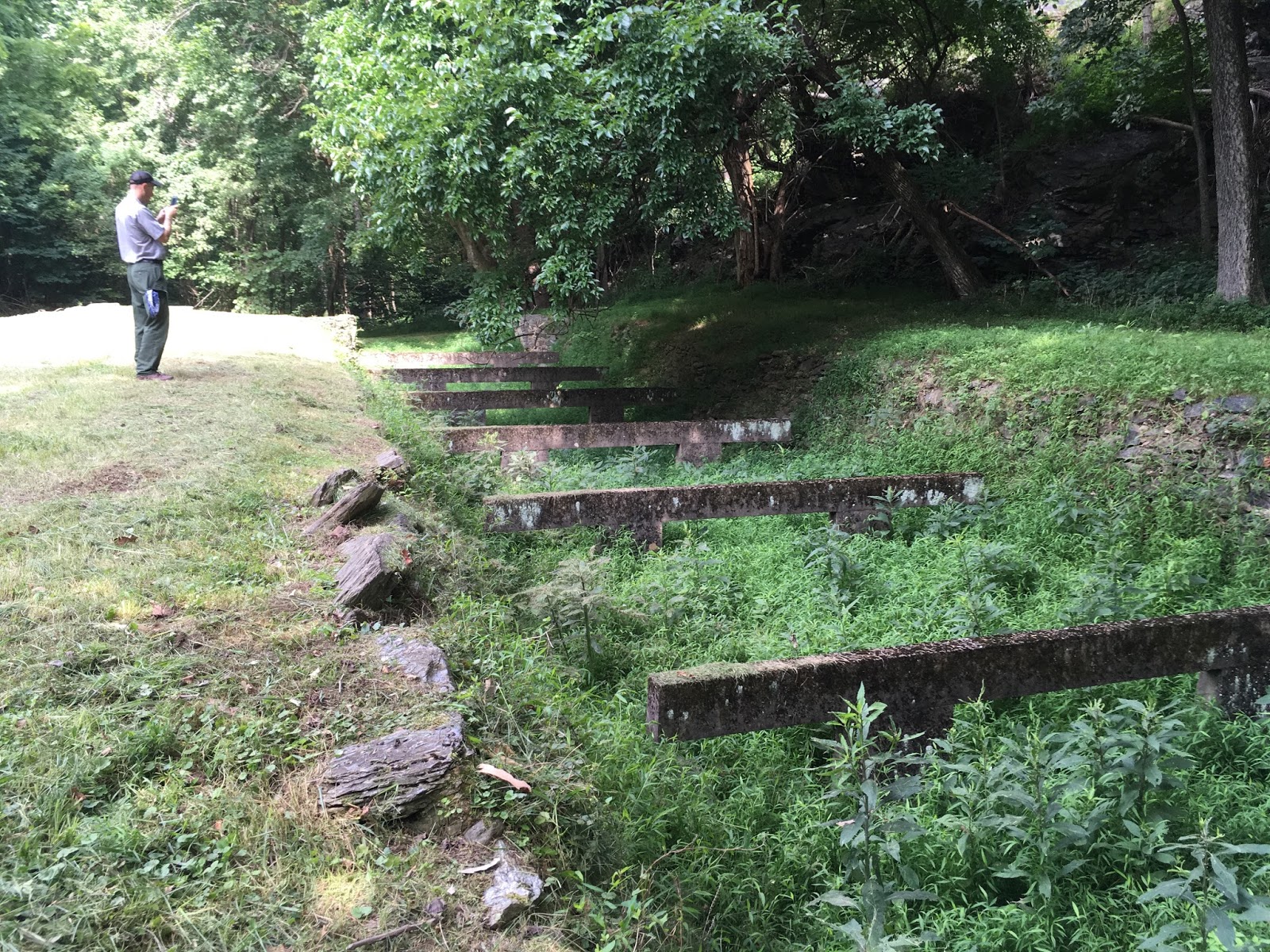 On Friday, I was back with my pals in the Youth Conservation Corps. We attempted to clear a large retaining wall of vegetation, but we were rained out. So we returned to headquarters where we replaced some shelving in the parks archival storage room.