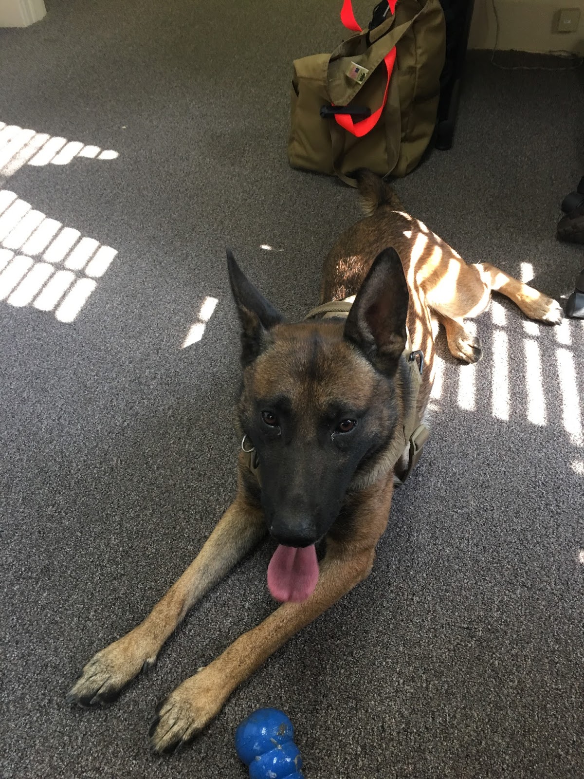Ranger Little decided to do some more training with Konyak, which is always a great learning experience for me. We headed over to the maintenance yard where we would be conducting the training. For the first part of training, we would be working on biting while on leash (6ft leash), as I would use a hidden bite sleeve (in a sweatshirt) instead of the big red suit I had worn the previous week. For the drills, I would be “breaking” into cars and have to follow Ranger Littles commands or else I would be bit. I also was given a cap gun to use to imitate the sound of a firearm going off, but unfortunately, the cap gun didn’t work during either scenario. Even though the cap gun didn’t work, the scenarios went well as Konyak obeyed commands, had good bites, and continued to work until returned to the car. The next part of training was having Konyak search vehicles (13 total) that may or may not have had drugs in them (we planted some training drugs in a few cars). Again, Konyak did a great job at thoroughly searching all vehicles and finding the drugs in the vehicles that we had planted them in. Ranger Little explained that after searching a few cars in a row, some dogs may get tired or not search the car thoroughly, but Konyak showed no signs of this at all which is a great sign. As a treat for every find (of drugs) we would throw his ball for him so that he knows he did well. The final part of training was using my car that we had let drugs sit in (to create smell for Konyak) and practice a car stop as if it were happening on the streets to see if Konyak would hit on the drugs. On this training, he had a bit of a harder time alerting to the drugs, due to a possible number of factors, but that is why K9 handlers and programs stress train, train, train. After cleaning up and restoring all the cars and securing the drugs, it was now time for us to hit the road for the rest of our night shift, along with Ranger Summerlin, Cole, and Schreck.