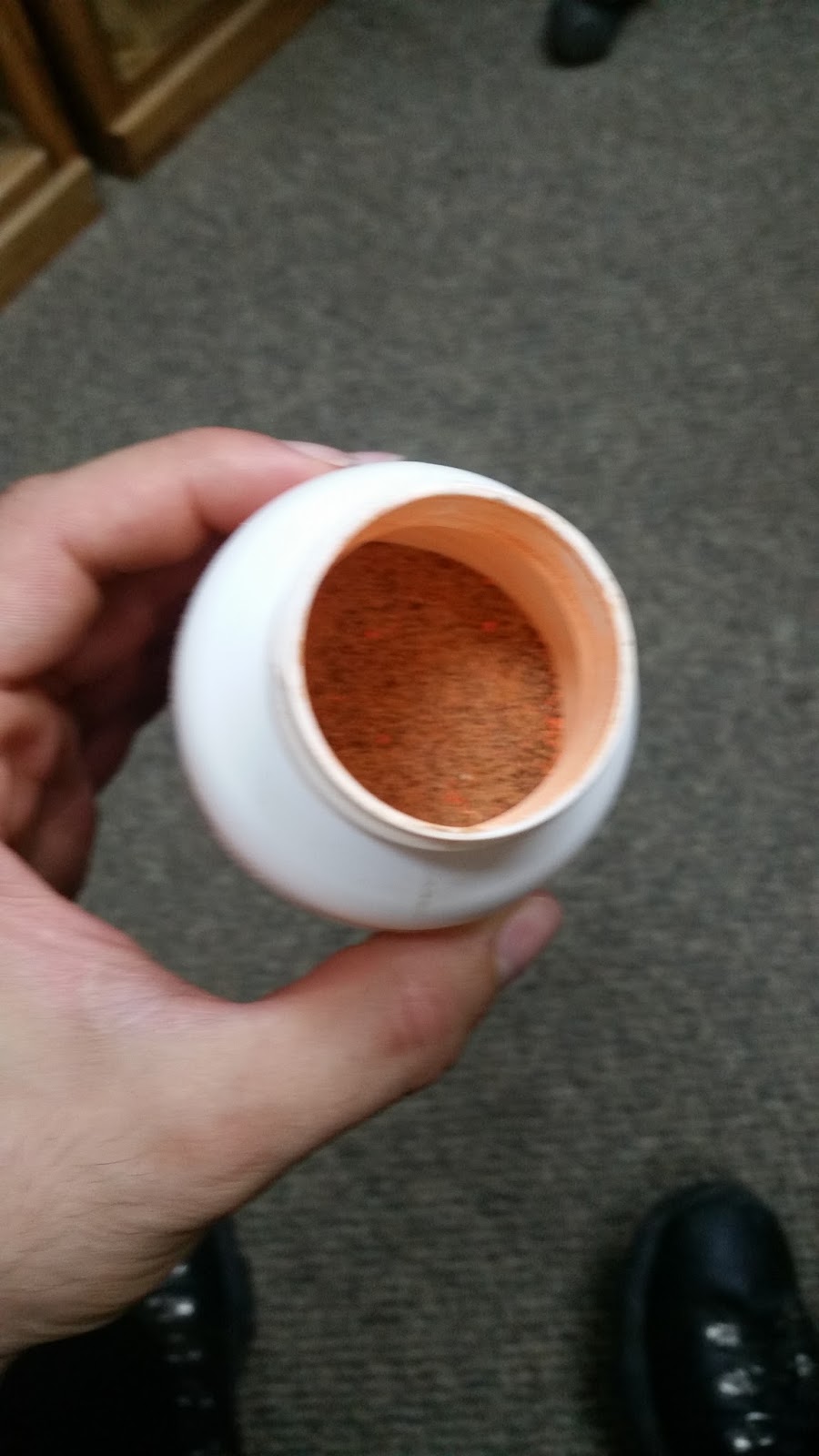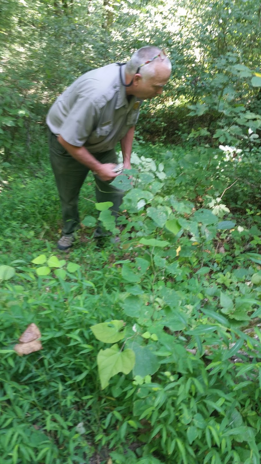 Many Appalachian people have harvested ginseng roots for supplemental income. They typically wear gloves or knee pads and have a screw driver or walking stick with a metal rod attached to the bottom of it. Another inclination of someone digging is that their knees and underneath their fingernails will be very dirty. I was informed that so many have harvested wild ginseng, it has reached a point near extinction. Within the countries that import the root, the wild plant has already reached extinction. That is why protecting the plant on federal land is so important. At Mammoth Cave, the surveyed plants have been dug up and marked with a colored metallic powder (see picture below). If that powder is seen by any buyer either by eyesight or under black light, they are to report it. Each park or federal land has a unique chemical composition of powder to rub on the root of a ginseng plant. In theory, the powder aids in ginseng determent and monitoring where the plant is poached. However, it is a tall order to monitor and protect ginseng along with all other duties. It definitely has a better chance of being accomplished when it is made a goal across divisions.