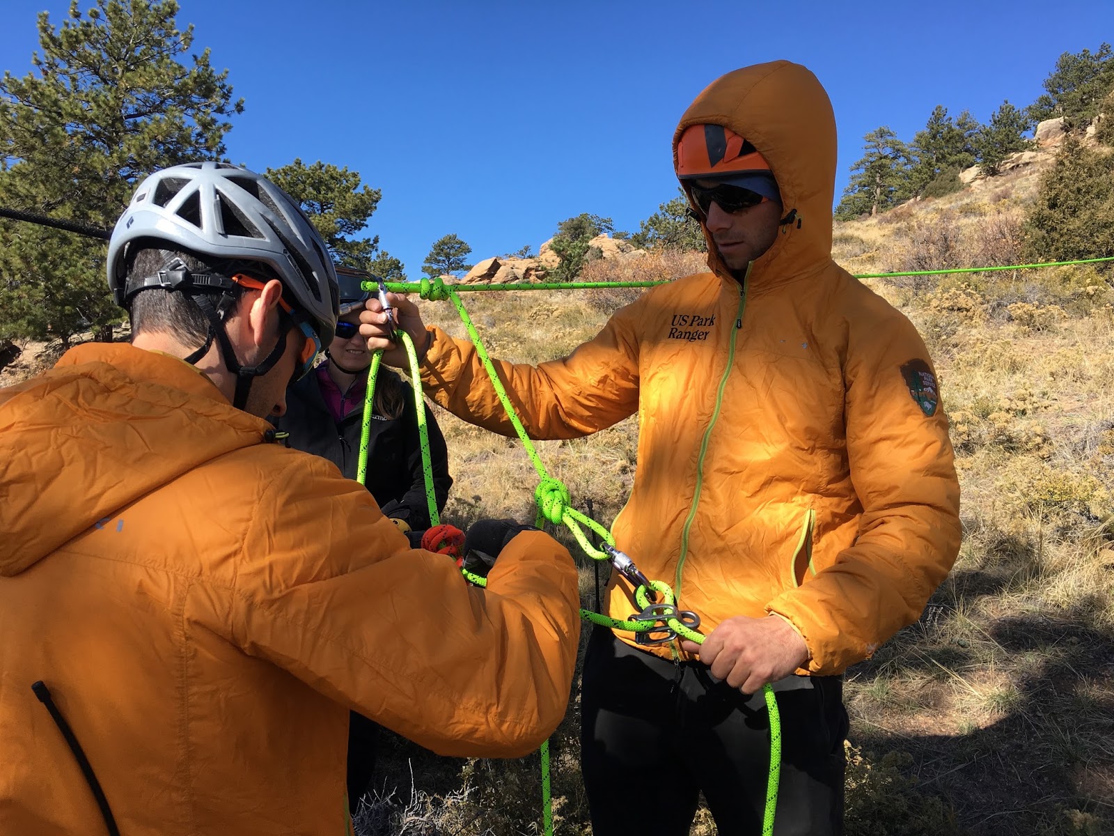 I hit the ground hiking. My first day in Colorado was dedicated to an all-day search and rescue practice referred to as “Guiding Line Rope rescue”. This would be used in an area where there is a steep incline and rough terrain (which is very common in the Rocky Mountains). A combination of protection rangers and climbing rangers instructed the course. This was great because I got to learn about the various day to day problems that a protection ranger might encounter in the park.
