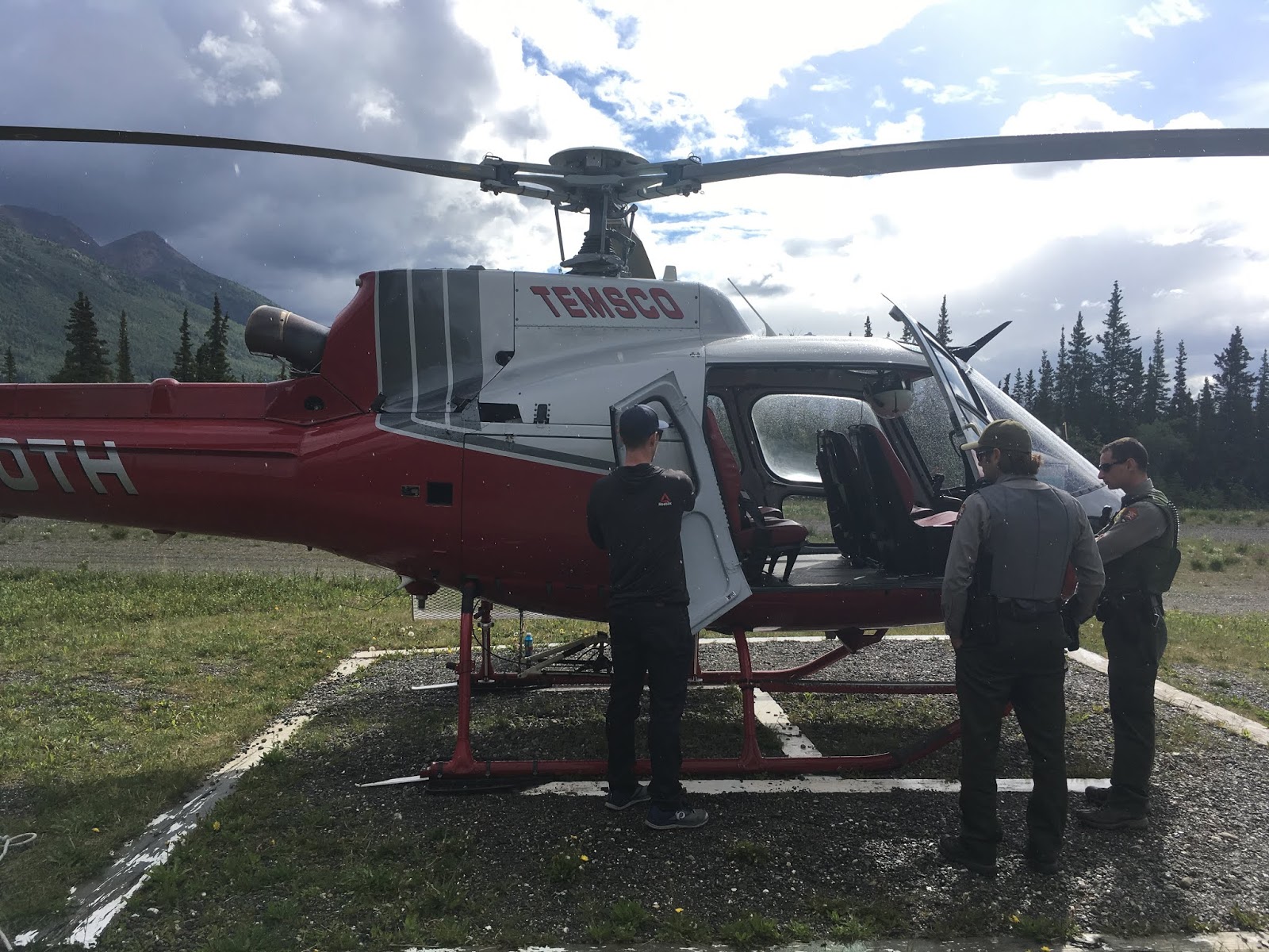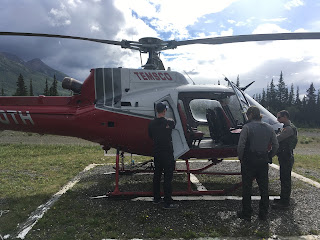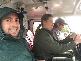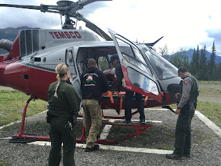 One morning we had a helicopter safety demonstration by one of the pilots and the park’s Helicopter Manager. The helicopter they have in Denali is primarily used to fight fire, but can also be used in search and rescue. They went over the features of the bird, as well as the office and gear storage space. They showed several of the rangers and I how to shut off the aircraft in the event of an emergency and if the pilot is unresponsive. We also learned some of the basics for choosing a landing site, approaching and departing the helicopter, and how to remove some of the seats and install a litter for search and rescues.