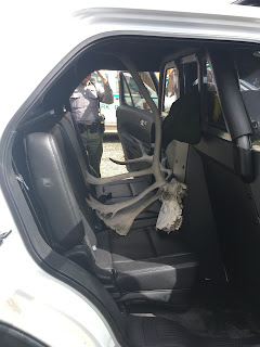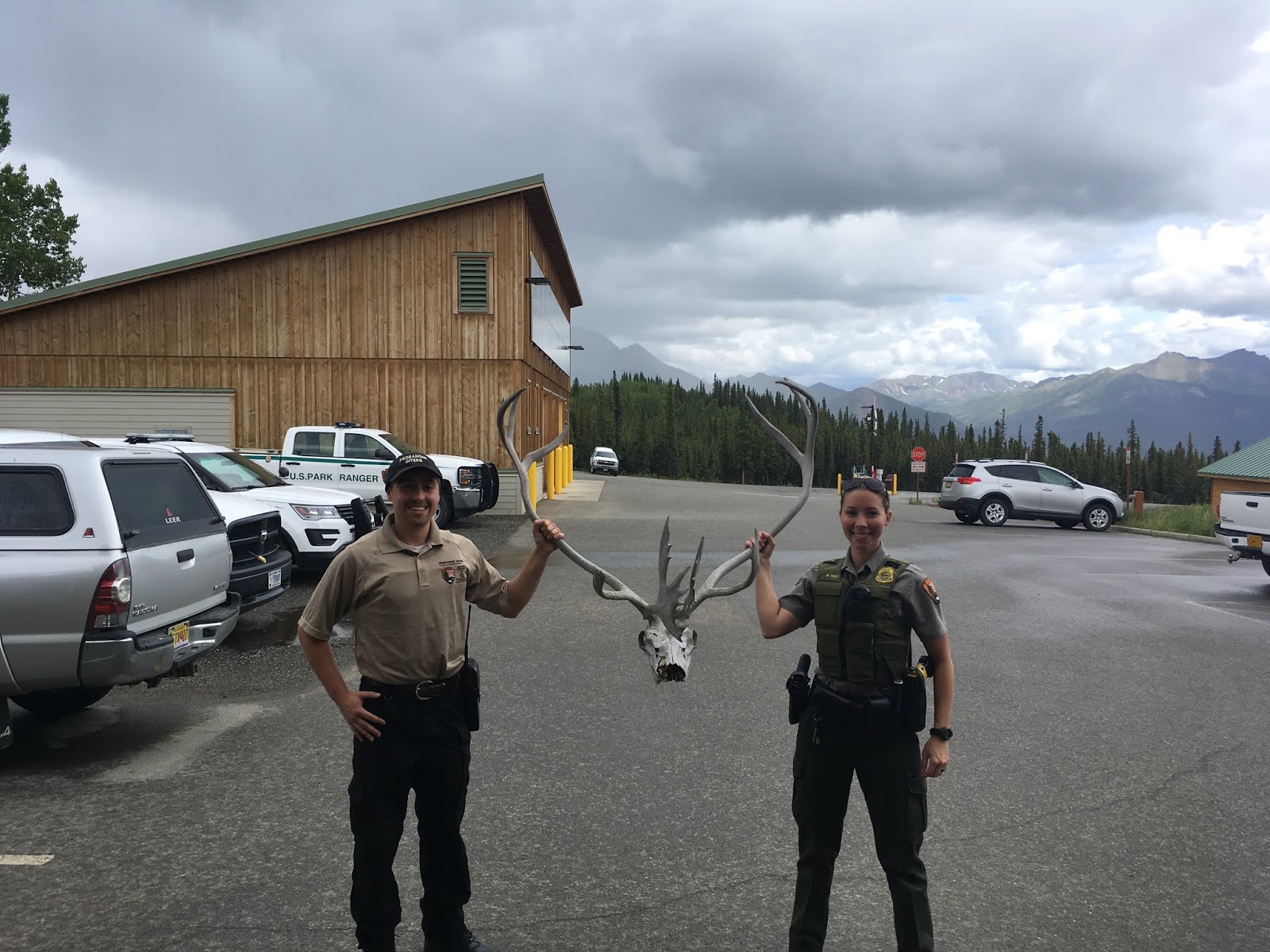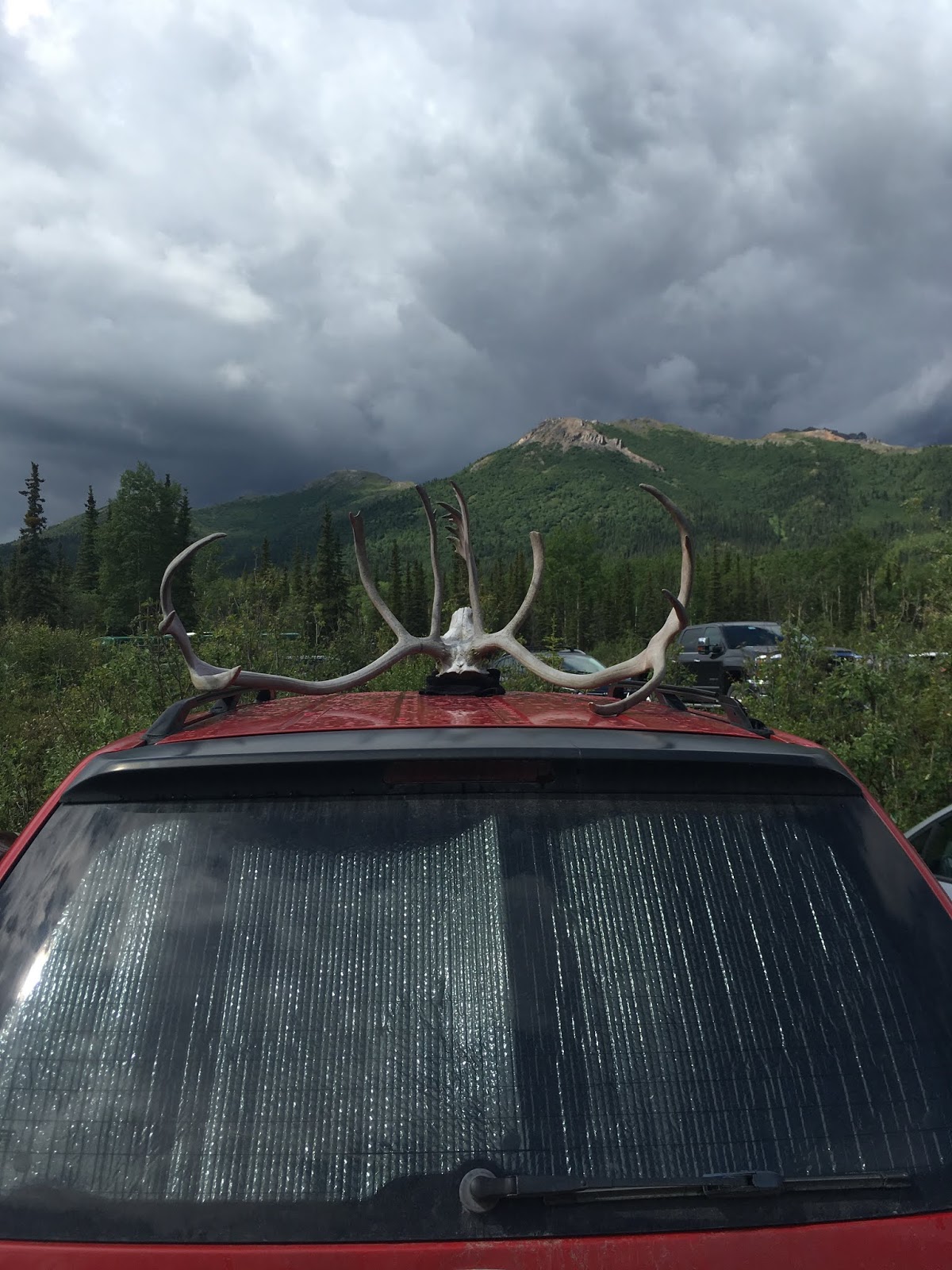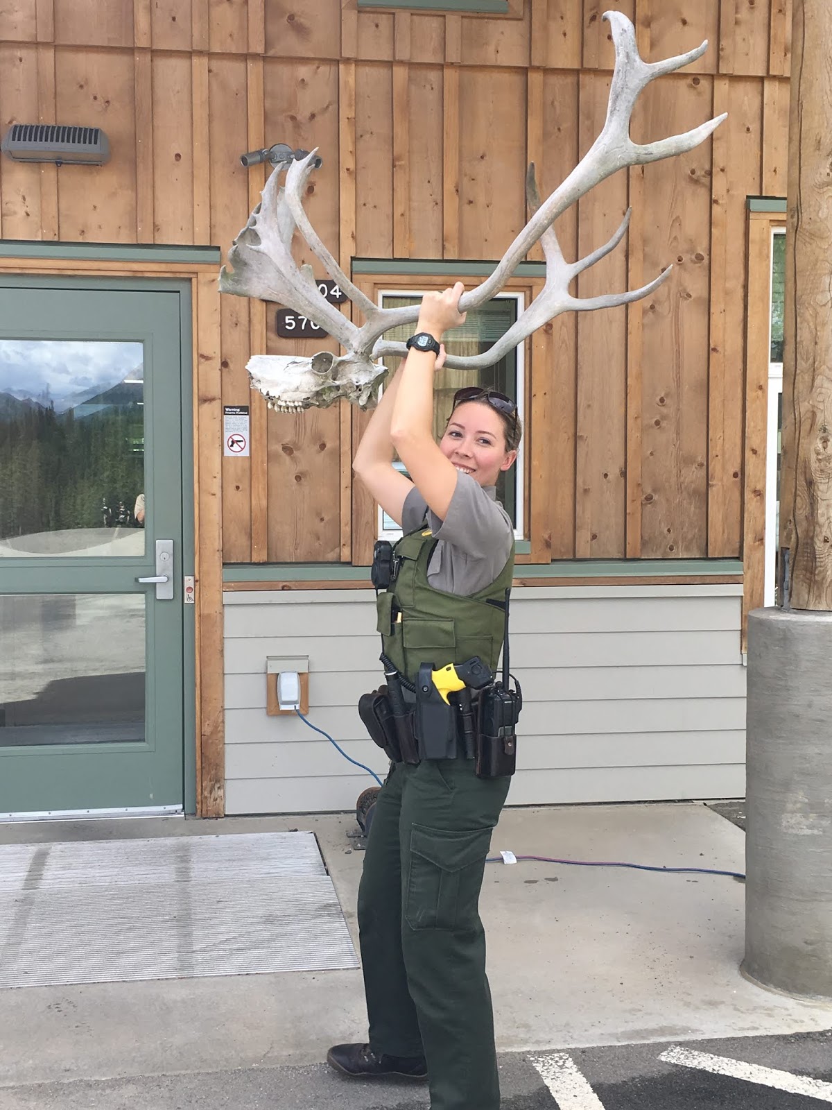 Later that day, we had a call in from a park employee that a couple had a caribou skull and antlers tied to their vehicle and were heading out of the park. It is illegal, except in certain circumstances where hunting is permitted, to posses or remove from the park an animal, dead or alive, or parts thereof. We went to look for the vehicle but couldn’t locate it, suspecting they had already let the park. A little while later we got another report that the car was in one of the parking lots. When we arrived the couple was not there, so we removed the rack from the vehicle, left a written warning, and returned to the office. After further investigation we were provided with proof that the skull was not taken from the park, but rather purchased outside of it. As such, it is being returned to its owners.