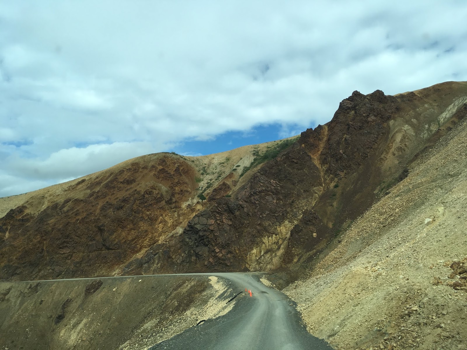Close by at mile 59, there had been a wolf kill the previous day or early that morning. The wolves had gotten a caribou, and by the time we got over there the wolves were gone, and there was nothing left but the spine and some of the ribs. There was a professional photographer hanging out in the area, waiting for a grizzly to show up and pick over the remains. He had a permit to be out on the road, but was not following some other regulations, as he had been stopped for an extended period of time in a place he should only have been making a temporary stop. We spoke to him and told him he had to move on.