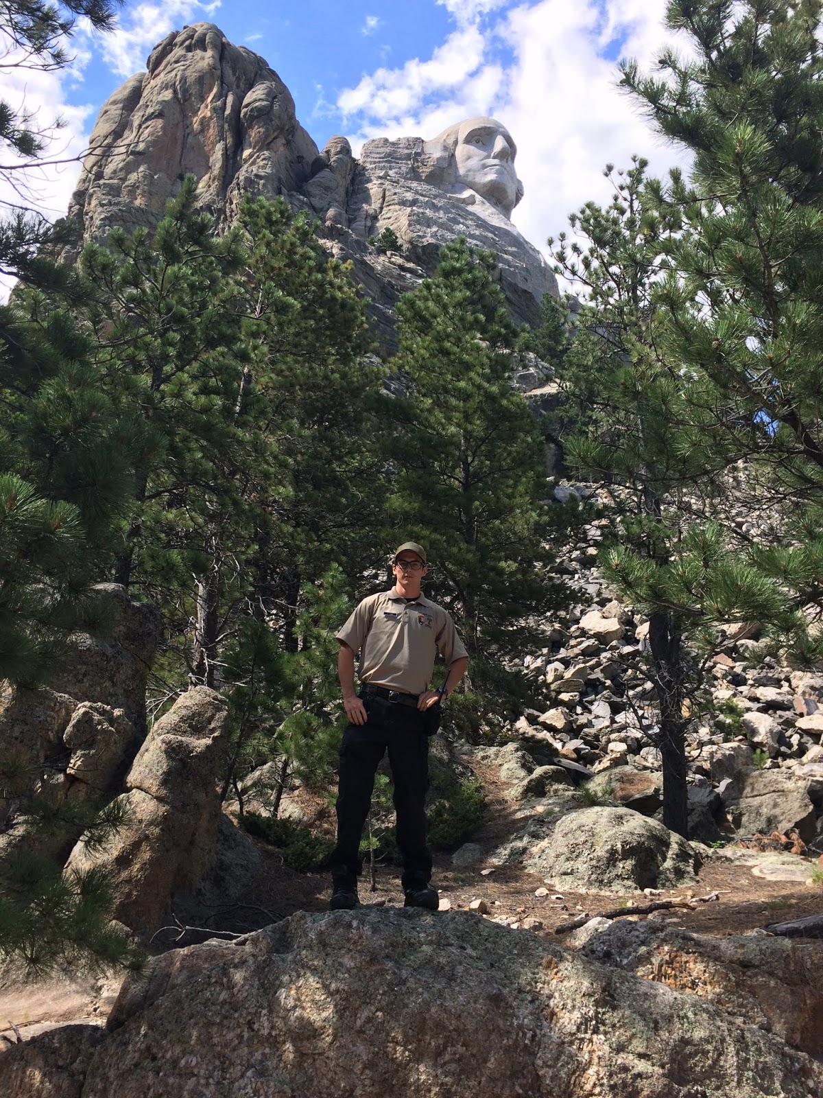 Although this summer I have been stationed at Badlands National Park, I have had the great opportunity to transfer to Mount Rushmore for three days of training with the Rangers there. Mount Rushmore is a National Monument, and has its own unique setting with the dense traffic of an urban park set in the great outdoors of the Black Hills. This creates a dynamic situation especially in the summer months when thousands of visitors flock daily to see this iconic symbol of our nation.