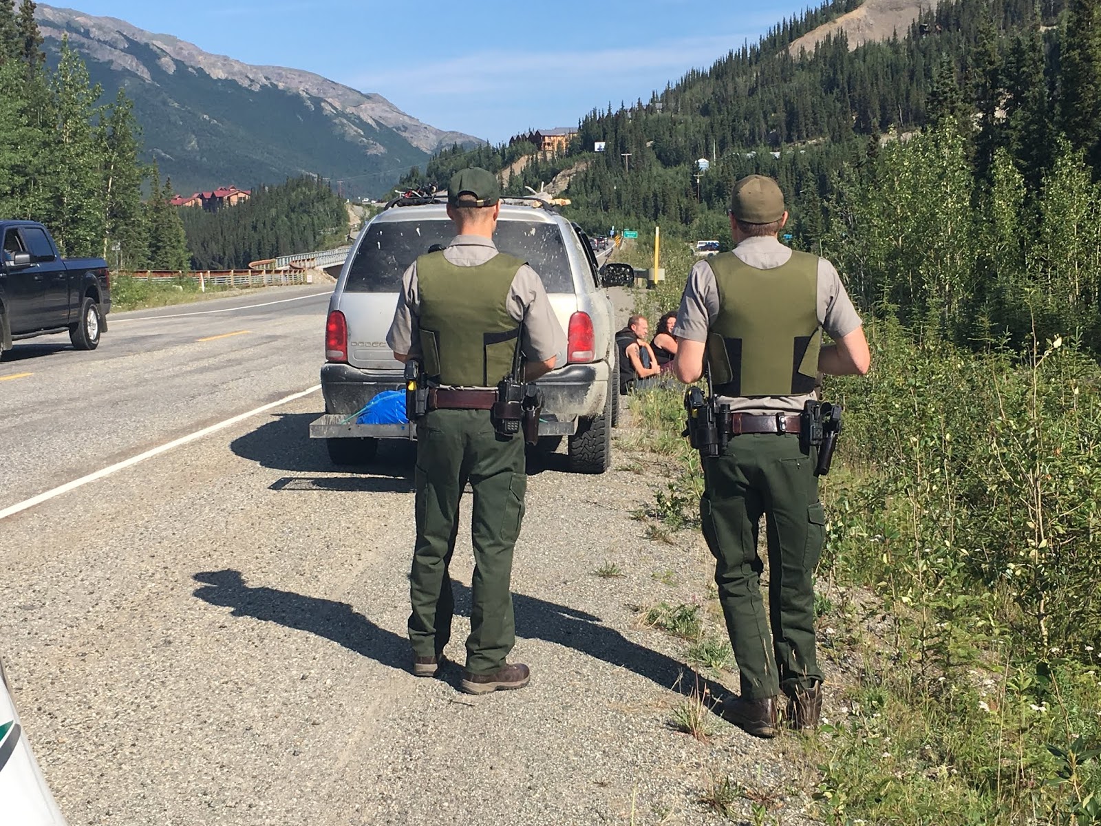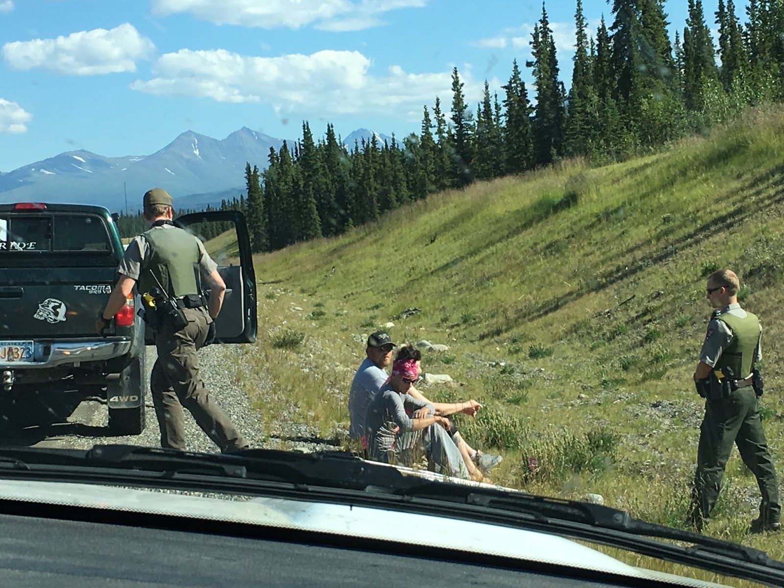 The first stop we made was for no seat belts. When Ranger Stack asked if there were any weapons in the vehicle one of the passengers informed him of a handgun, so he removed the driver and two passengers. They also informed him that they had marijuana in the vehicle. Being that marijuana is recreationally legal in Alaska, a lot of people end up having it on them. Many do not realize that they are in a national park and on federal land when they drive this stretch of the George Parks Highway. And even if they were aware, this is one of the only roads in the area and pretty much the only road between Anchorage and Fairbanks, the first and third largest cities in the state. As you can see, the situation regarding marijuana is rather strange. The rangers understand the complexity and confusing nature of this issue and utilize a wide range of discretion. Nevertheless, they are wary of those who drive under the influence/while impaired and will perform field sobriety tests if they deem necessary, and they are acutely aware that small traffic violations can lead to the discovery of more serious violations. Ranger Stack conducted a search of the vehicle and did not find any other issues. It turned out that the passenger had a suspended license for DUI, so he was not driving. He was also under the influence of marijuana and so had his girlfriend hold his gun for him, since you are a prohibited possessor if you are under the influence of illicit substances. Since they were very compliant and seemed to be making a concerted effort to follow the law, Ranger Stack let them go with verbal warnings.