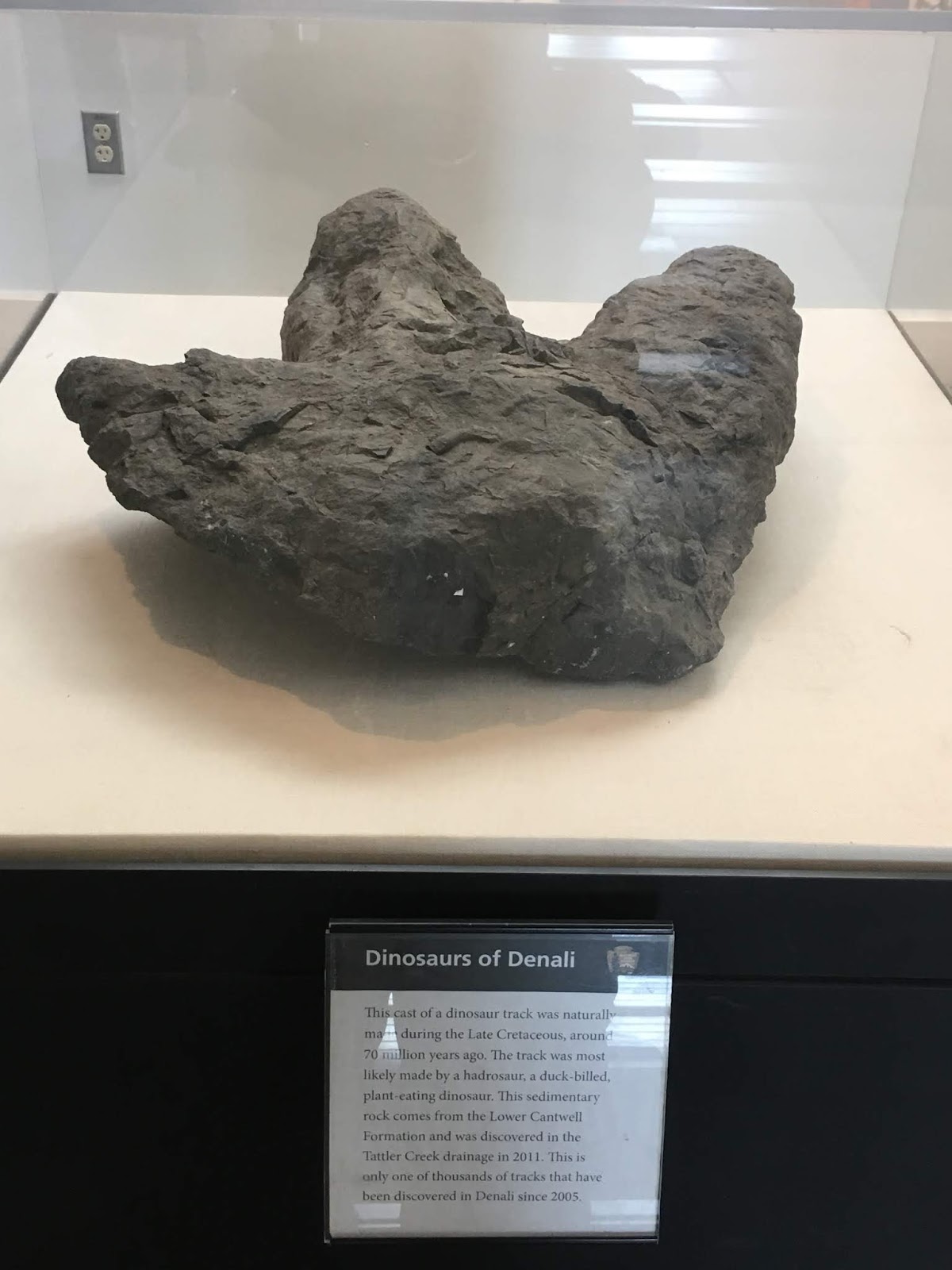 | Cast of a dinosaur foot print, found up Tattler Creek |
