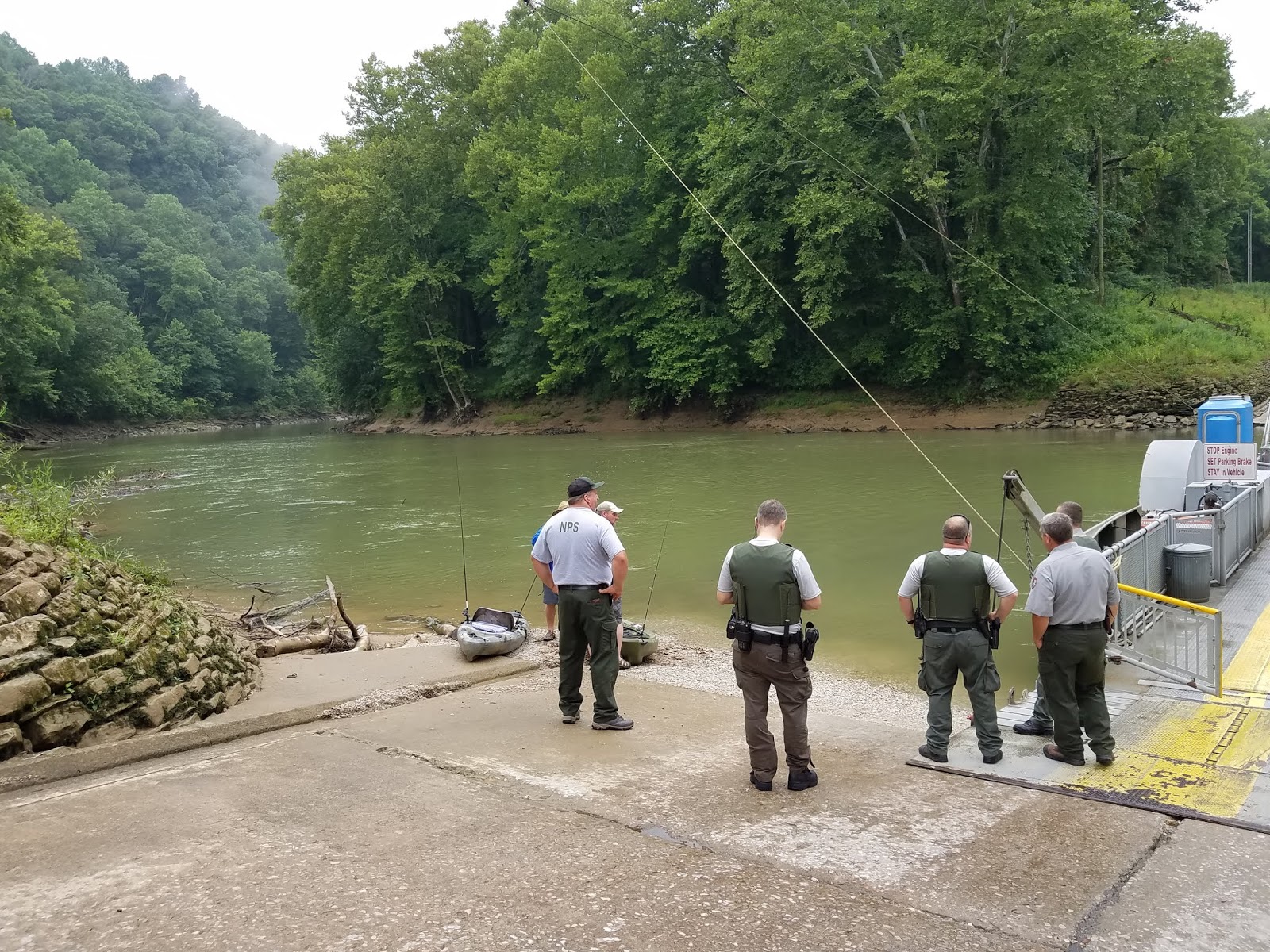 After returning from the back country, I started my week by riding along with Ranger Russell. We patrolled the ferry parking lot and looked into cars for signs of alcohol use on the river. I also learned more about the issue of ginseng poaching within the park. Hunting for wild ginseng is popular in the area, given the root’s value in traditional medicine. However, harvesting ginseng within the park is illegal, and arrests have been made in the past due to the illicit trade. Continuing the spirit of resource protection, I also helped investigate reports of a deer carcass on the river the following day. Kayakers had reported seeing a dead ten point buck on the river bank, and we went out to investigate. The site ended up being too difficult to reach on foot, so we launched a boat and went downstream to take a closer look.