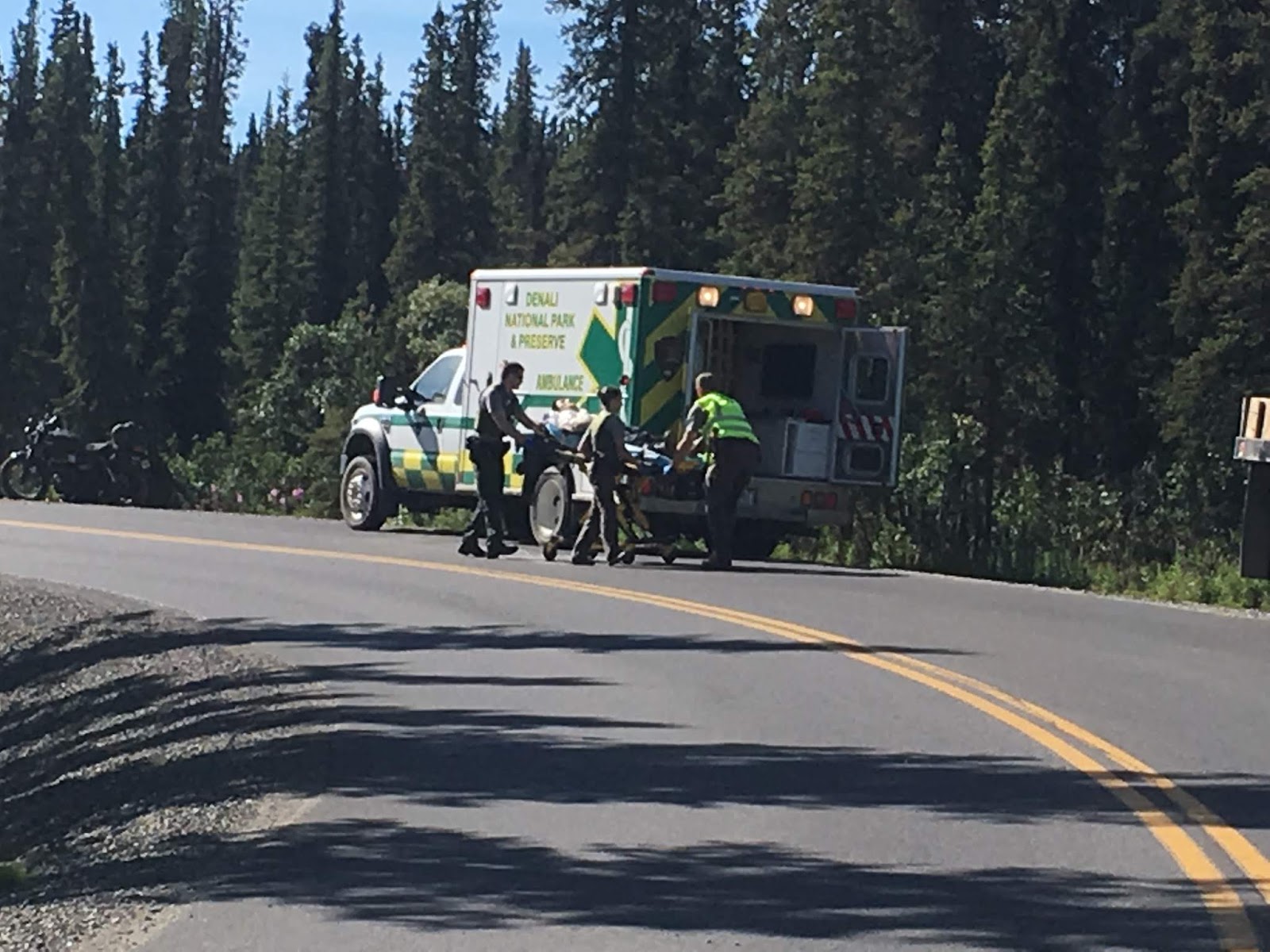 Though I only worked three days, this was a pretty eventful week. On Monday, Ranger Page and I were making our usual morning rounds when we were told about two young enlisted men who were late returning from the backcountry. They had failed to report to work and were therefore AWOL, so the military and their family members were calling the park trying to find them. Ranger Page and I searched for them on social media to see if they had made any posts suggesting they had returned from the backcountry, which they had not. We looked for their vehicle in the parking lots and found it, assuring us that they had not left the park. While they weren’t yet that long overdue, the fact that they were in the military and had failed to report to their post and that one of them had a life threatening, exertion induced medical condition were causes for alarm. The rangers began poring over maps of the backcountry units they had gotten permits for. Their plan involved crossing the Muldrow Glacier, something reported to be quite difficult. After determining some potential routes they may have taken, the helicopter was called in. Ranger Page and I prepared recovery kits for those who would be responding. The helicopter refueled and took on the gear and personnel.