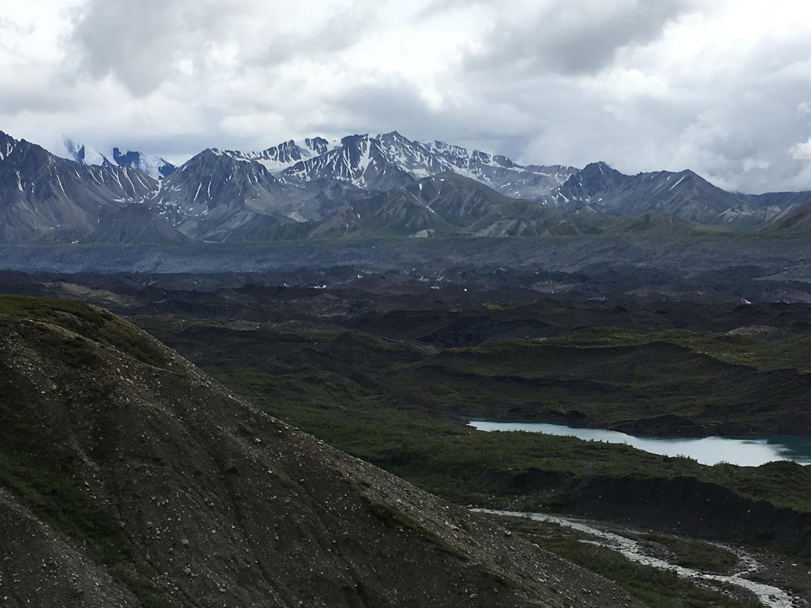 I was off for the last few days I had in Denali. I headed out into the backcountry for one last hurrah. I cut the trip short because the weather wasn’t the greatest, but it was still a nice excursion. I went to the backcountry unit on the east side of the Muldrow, near where our former missing persons started out their trip. I did not cross the glacier, but rather I tried to get up onto a ridge to follow back to try and see where the Muldrow makes its sharp turn. I camped up on a hill overlooking the glacier the first night, but the next morning it was so cloudy I knew I wouldn’t be able to see anything more. I headed back to the road, and just as I reached it the rain started.