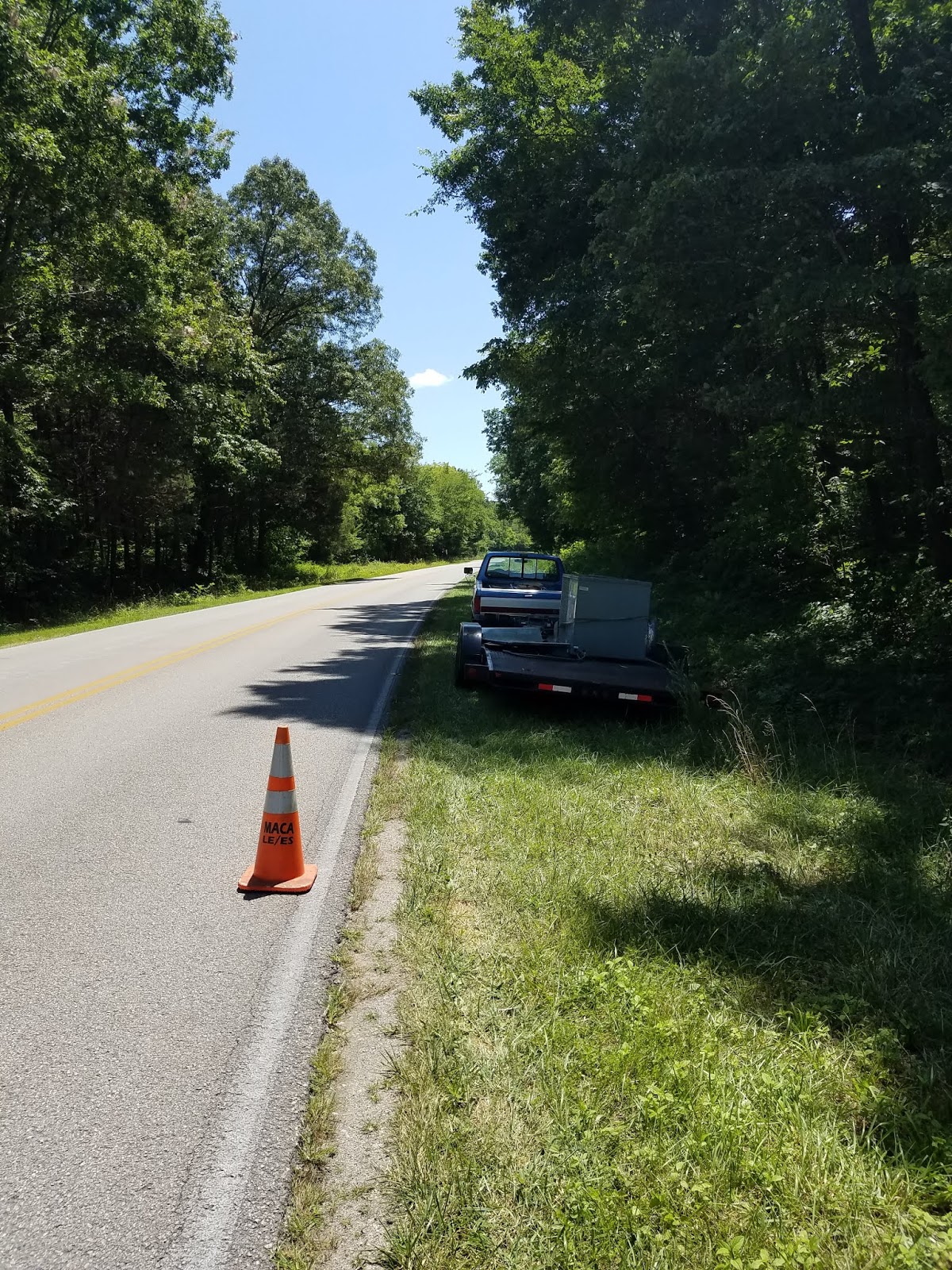 Later in the day I also assisted with an abandoned vehicle. While on patrol Ranger Russell noticed an abandoned vehicle and trailer parked on the side of the road. I gathered traffic cones and put them out along the roadside to warn motorists of the truck parked along the curve. Later, I returned to the area to check the status of the vehicle. The owners had returned and driven off, which took care of the problem.
