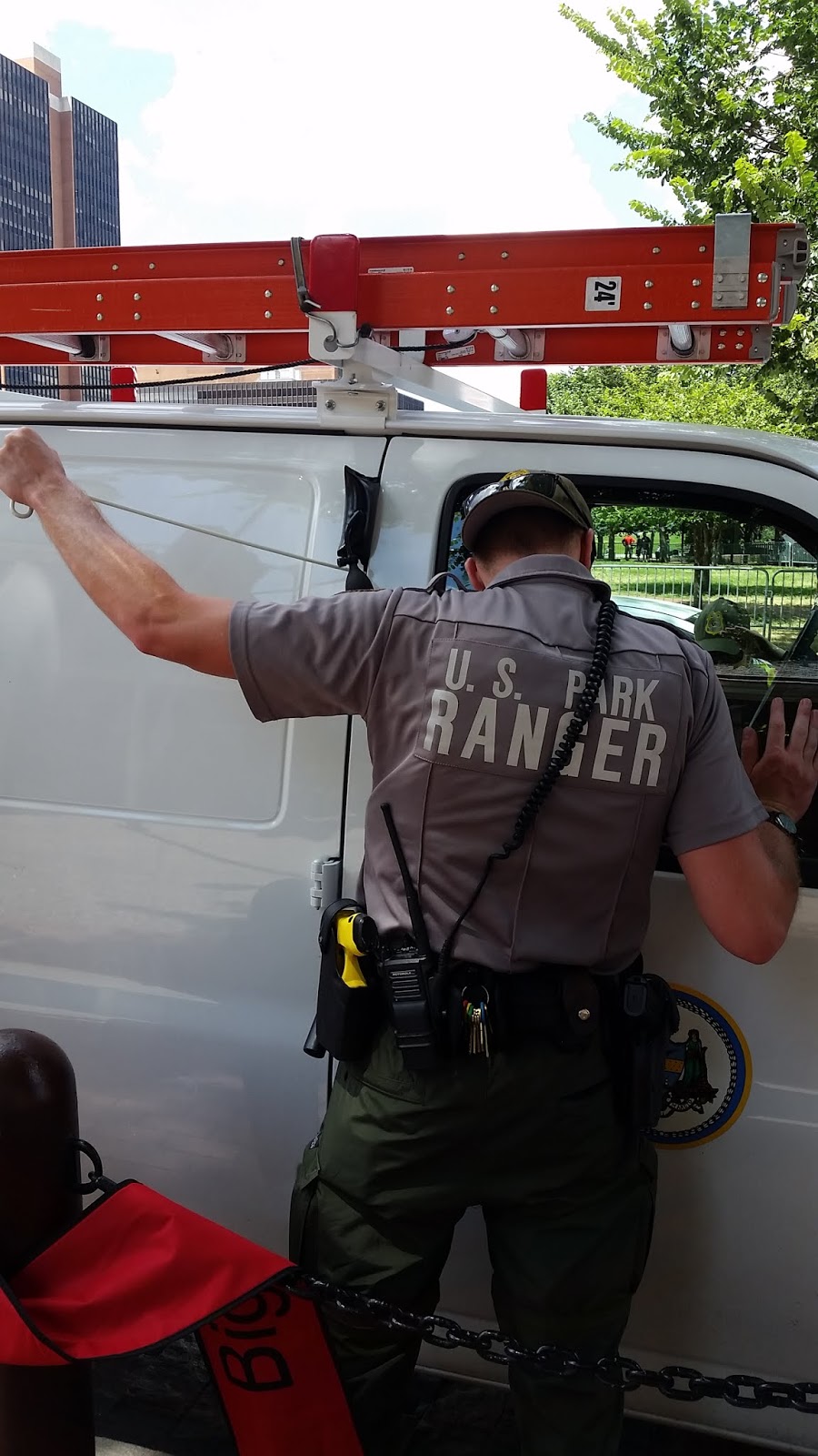 30 minutes before the end of shift, as the rangers are planning his arrest for the following day, we get a call that Mark Apples was harassing people at the Liberty Bell line and was headed into the Visitor Center. An hour later Mark Apples was in custody, undergoing a full search by a ranger, and headed to the hospital because of his extreme drunkenness. Ranger Cooper led the case, so she was responsible for staying with Mark Apples until she could transfer custody over to the Philadelphia Sheriffs, even if it meant hanging out in the hospital for 3 hours after her shift had ended.