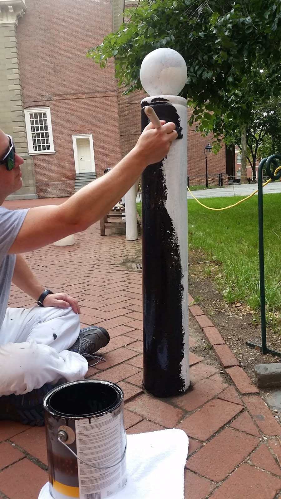 The painters are another friendly and dedicated maintenance team just as gardening had been a few weeks back. The week was a game with the weather. We’d start the day painting bollards at Independence Hall, feel a drizzle, and rush back inside to paint some benches or gloss arrowheads. One eye trained on the window the entire time, waiting for the sun to come back out. 45 minutes later the rain would stop, we would power-walk back out to the bollards, and paint for 30 minutes before the rain began again. Of course, we had to do extra coats and touch ups on everything because of the rain damage, but everything turned out good if I do say so myself.