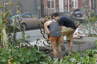 Sharing my gardening knowledge with a fellow Temple student during weekly garden hours.
