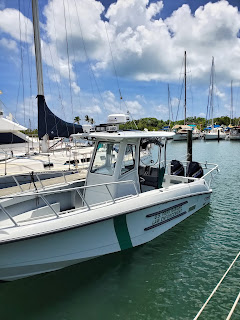Eager to take a ride in the new boat, we conducted a safety briefing and prepared to launch. We left the marina and made our way to Buck Island. During the trip, we tested out the lights and sirens and conducted trials to see how fast the new boat can go. Its safe to say that poachers are going to have a hard time outrunning justice!