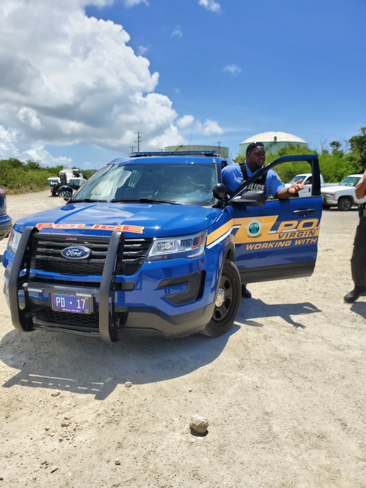 As we arrived at the second boat launch, I scanned the area in search of the vessel that fled. Before we could even stop the vehicle, Ranger Laurencin noticed the vessel flee from the dock into open water. At this point, the small vessel was low on fuel and had nowhere to run. We decided to continue the investigation and wait out the suspected poacher. Prior to making contact with the captain of the vessel, Ranger Laurencin requested backup from VIPD. We waited for a few minutes until two VIPD units arrived on scene.