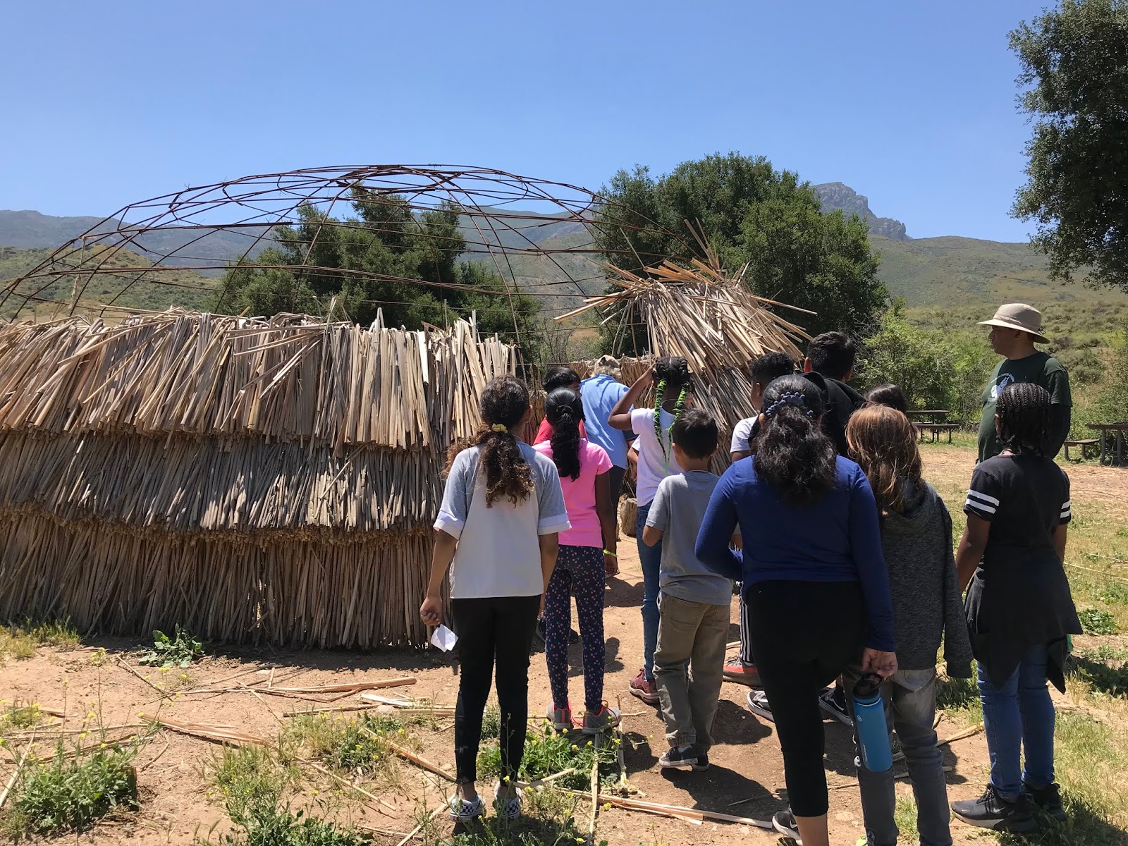 After the hike, we went to an activity where Mary talked about how the Chumash were close to the ocean and used those resources. She passed around specific shells they used called abalone shells and she ran an activity where they used a Chumash drill to make a necklace. After this we moved to an activity that was inside a Chumash home, called an ‘Ap, and Mary led a discussion about Chumash artifacts and went more in depth how the Chumash used the resources around them.