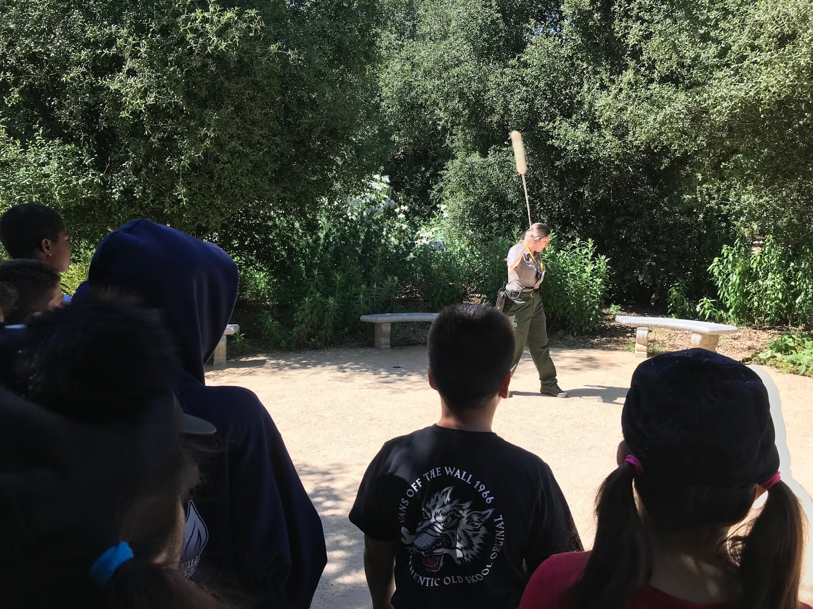 It started off in a similar way as Wednesday where we started off as a group and then split off into groups. Luckily this time we had 5 people running groups. This time around I shadowed a different person, Ranger Mary (not the same Mary…there are a lot of Marys). This field trip started off with a hike once again relating nature to the Chumash. Ranger Mary also ran a discussion about culture and got the kids to talk about their own cultures which was a treat to listen in on. The kids also got a chance to look at Chumash artifacts that Ranger Mary passed around.