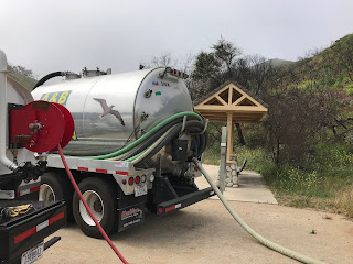 For example, my first day working I spent the day with three people named Dan, Tom, and Riley. The day started off with a bang when we had to go pump out some bathrooms at the park. This was definitely a unique experience for me. First, Tom and I filled up a water truck to bring over to the bathroom. We then met up with a contracted company that supplied the “vacuum truck” (the PG name for it).