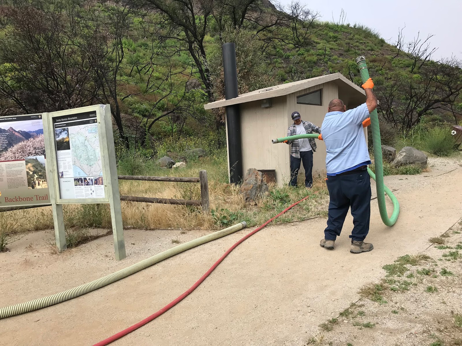 For example, my first day working I spent the day with three people named Dan, Tom, and Riley. The day started off with a bang when we had to go pump out some bathrooms at the park. This was definitely a unique experience for me. First, Tom and I filled up a water truck to bring over to the bathroom. We then met up with a contracted company that supplied the “vacuum truck” (the PG name for it).