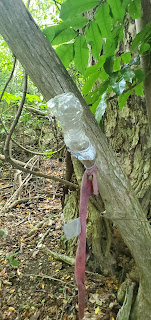 Trail markers made out of a water bottles