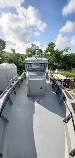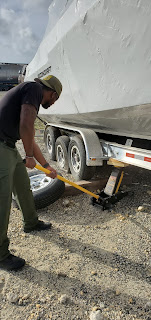 On Wednesday, Ranger Laurencin and I went to the container port to pickup a new law enforcement patrol vessel. On our arrival, we found that the vessel’s trailer had a flat tire. We determined that the vessel could not be transported safely without changing the flat tire, so we spent the rest of the afternoon battling the sun in order to change the flat tire and transport the new vessel back to the park. The afternoon served as another reminder that park rangers wear many hats, including maintenance!