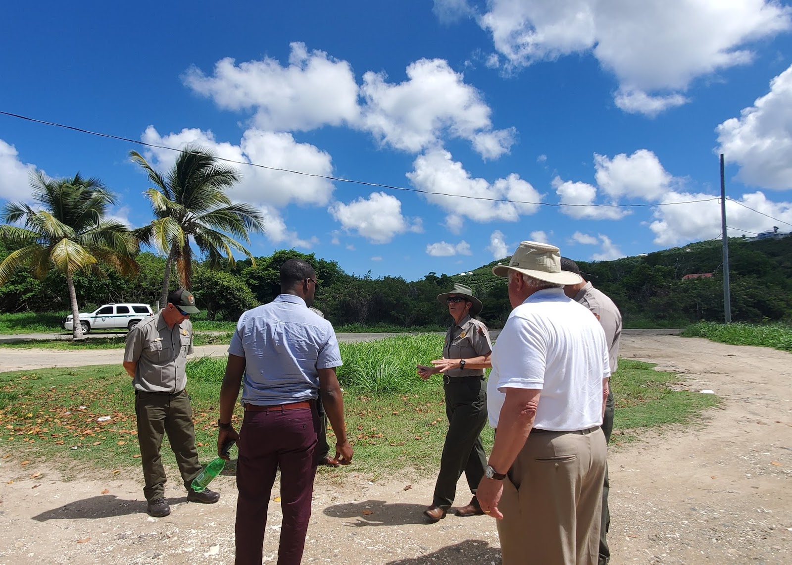 This week, our park had the privilege of welcoming NPS Director Dan Smith to St. Croix. Director Smith arrived on Monday for a tour of Salt River Bay National Historical Park and Ecological Preserve (SARI). Salt River Bay, which is 5 miles from Chirtiansted National Historic Park, was created by congress in 1992. The 1,015 acre park is located along the coast and features an estuary, where fresh and salt water mix. In addition to some of the largest remaining mangrove forests in the Virgin Islands, SARI has a rich history showcasing the earliest indigenous settlements in the central Caribbean. The park includes a visitor contact station with picturesque views, bioluminescence kayaking, and the beach where Columbus landed in 1493.